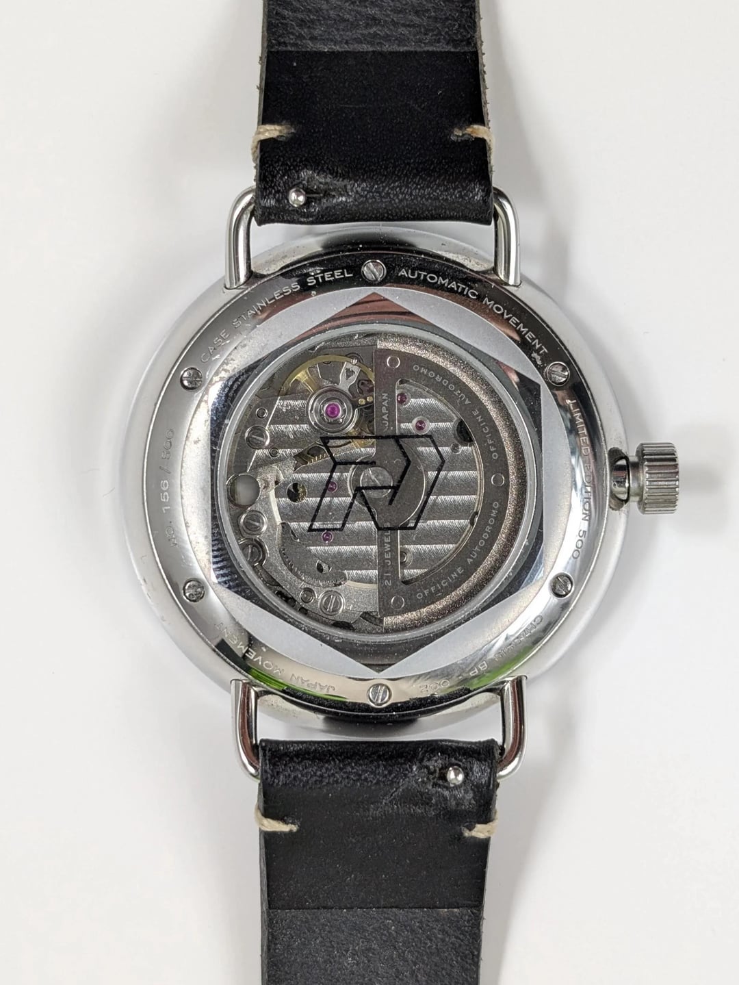 (sorry for the repost. there was an error when I posted and images didn't load) * Great condition, limited edition, Autodromo Monoposto mechanical watch * original presentation case, box, and brochure included * 156/500 (half were silver, half were black) * Case: Stainless Steel * Movement: Miyota 821A * Crystal: Domed KI Glass with Sapphire Coating * Strap: Black Leather * Water Res.: 30m * Dimensions: 43x48mm * Thickness: 10 mm * Condition: excellent. 1 very small scratch in the crystal seen in the photo but mostly visible in bright light * **$690 shipped** PPFF or Venmo