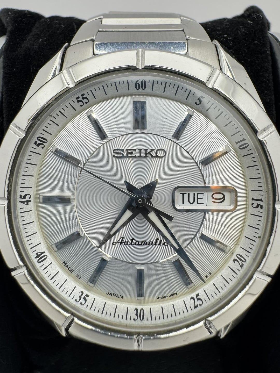 Hi everyone, Up for sale is a Seiko Presage SARY013 automatic wristwatch. Here is everything you need to know: Specifications: * Reference Number: 4R36-00A0 (SARY013) * Serial Number: 250XXX * Year of Manufacture: May 2012 * Movement: Seiko 4R36 Automatic; 24 jewels; hacking and hand-winding functions * Case: Stainless steel, 40mm diameter * Dial: White textured dial with applied indices * Crystal: Original, scratch-free * Bracelet: Original stainless steel, fits up to approximately 18.5cm wrist circumference * Date Display: Day and date in English/Kanji * Box and Papers: Not included Condition: This Seiko SARY013 is in excellent condition, having undergone a recent service to ensure all functions operate flawlessly. The white textured dial remains pristine, complemented by the original, scratch-free crystal. The stainless steel case and bracelet exhibit minimal signs of wear, maintaining their polished appearance. The day and date complication offers bilingual display options, adding to its versatility. This watch has been completely serviced by me and tested for full functionality. The water resistance of the watch cannot be guaranteed. Shipping is from Budapest, Hungary insured. Price: $245 per PayPal F&F (or G&S +5%). I take over the shipping cost from the EU. If you're interested or have any questions, please don't hesitate to reach out to me. Thanks for considering this timeless piece, and happy collecting!