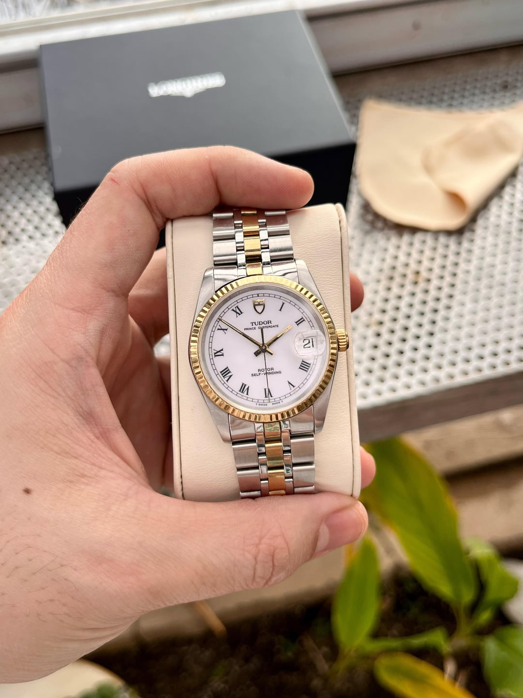 | Tudor Prince Oysterdate 74033 34mm Two Tone SS Linen Dial Automatic Watch coinexchange267 (64532) |