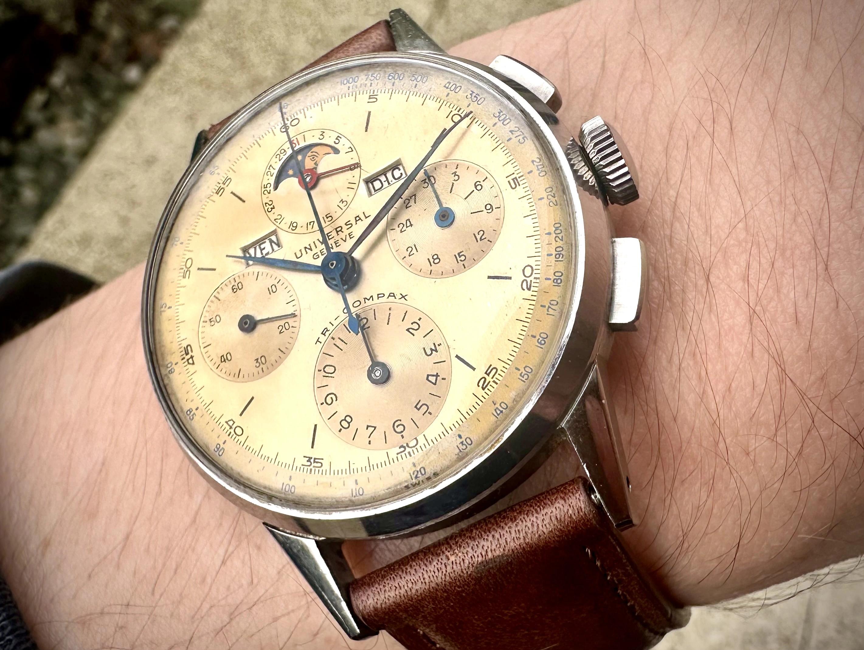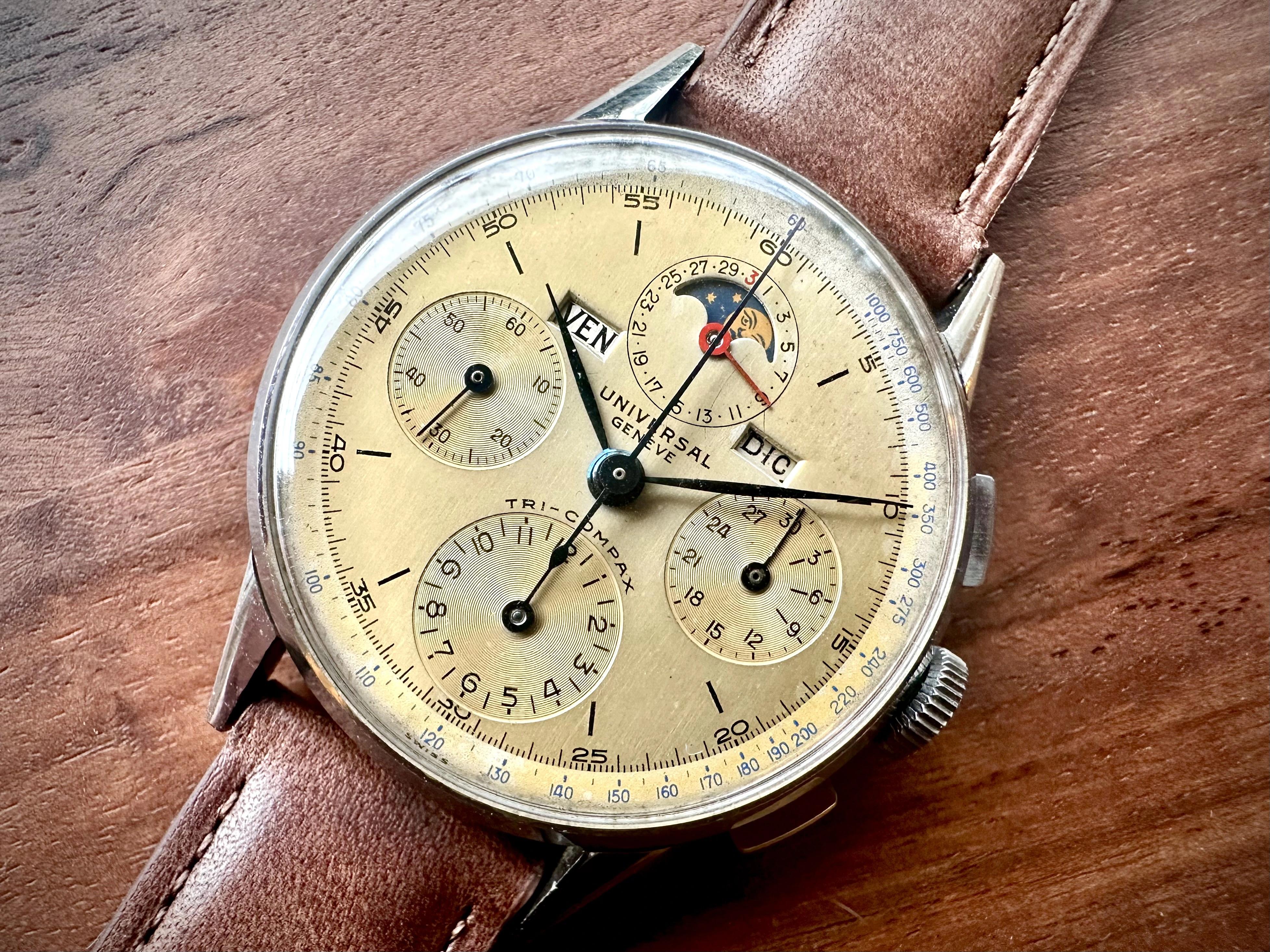 I’m selling a Universal Genève Compax, reference 22536, 37mm, in absolutely perfect overall condition.