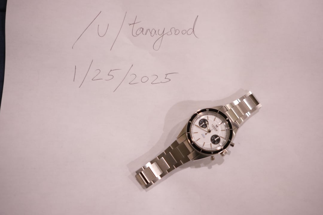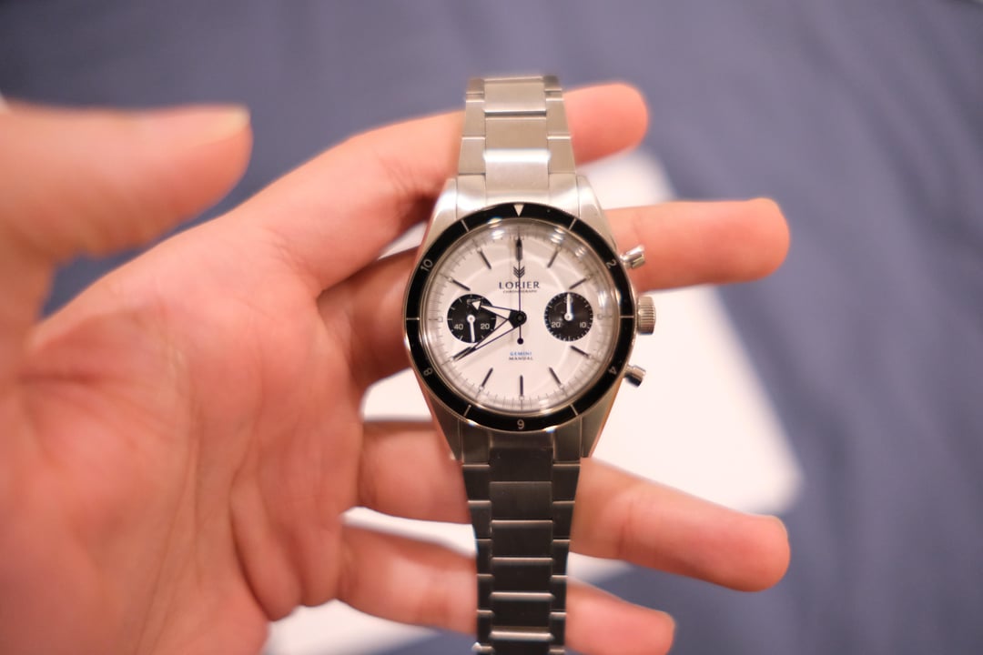 Lorier Gemini for sale. White dial chronograph, very lightly used. Comes with original carrying case. Asking $350 OBO incl. PP fees and shipping.
