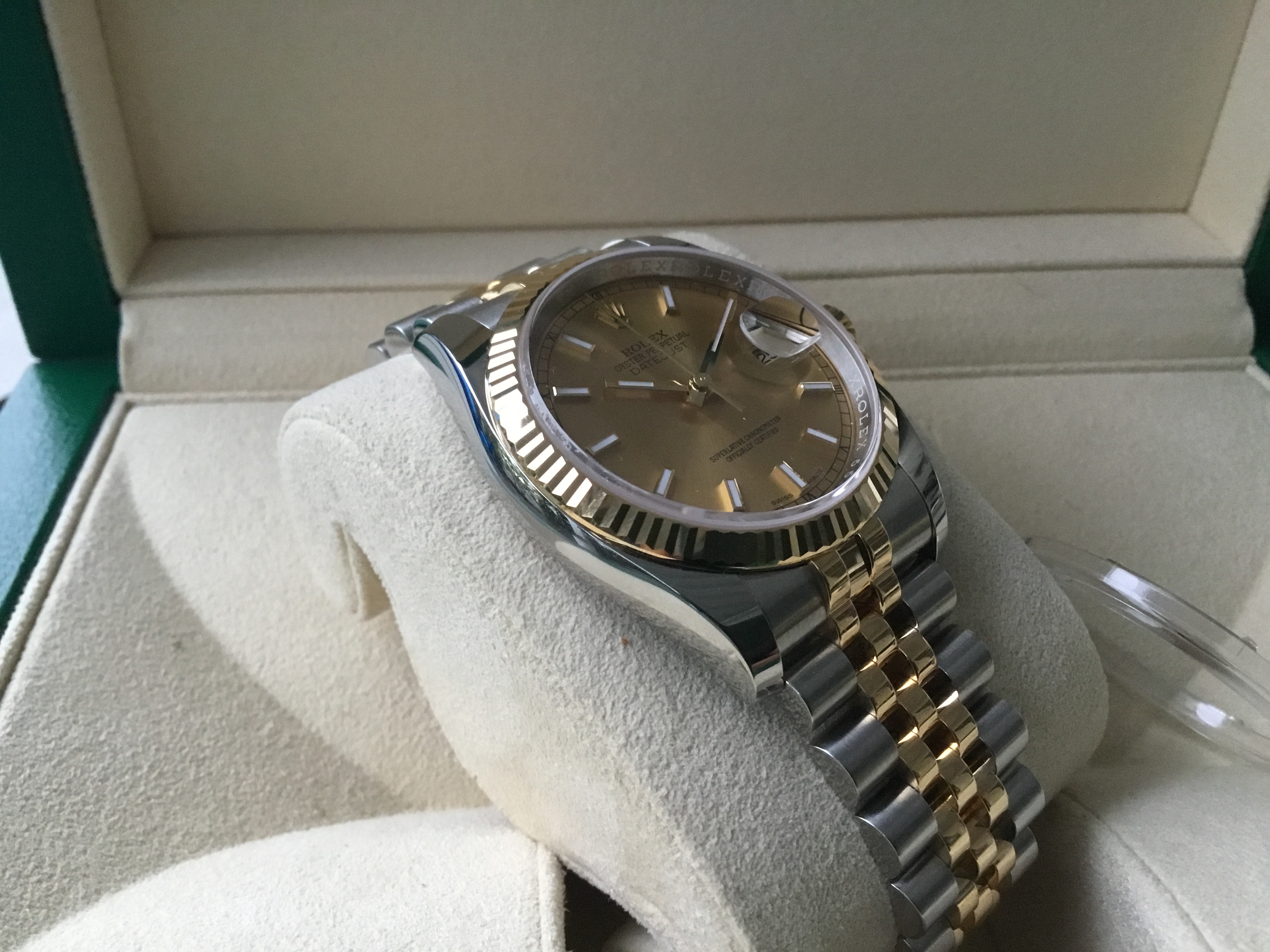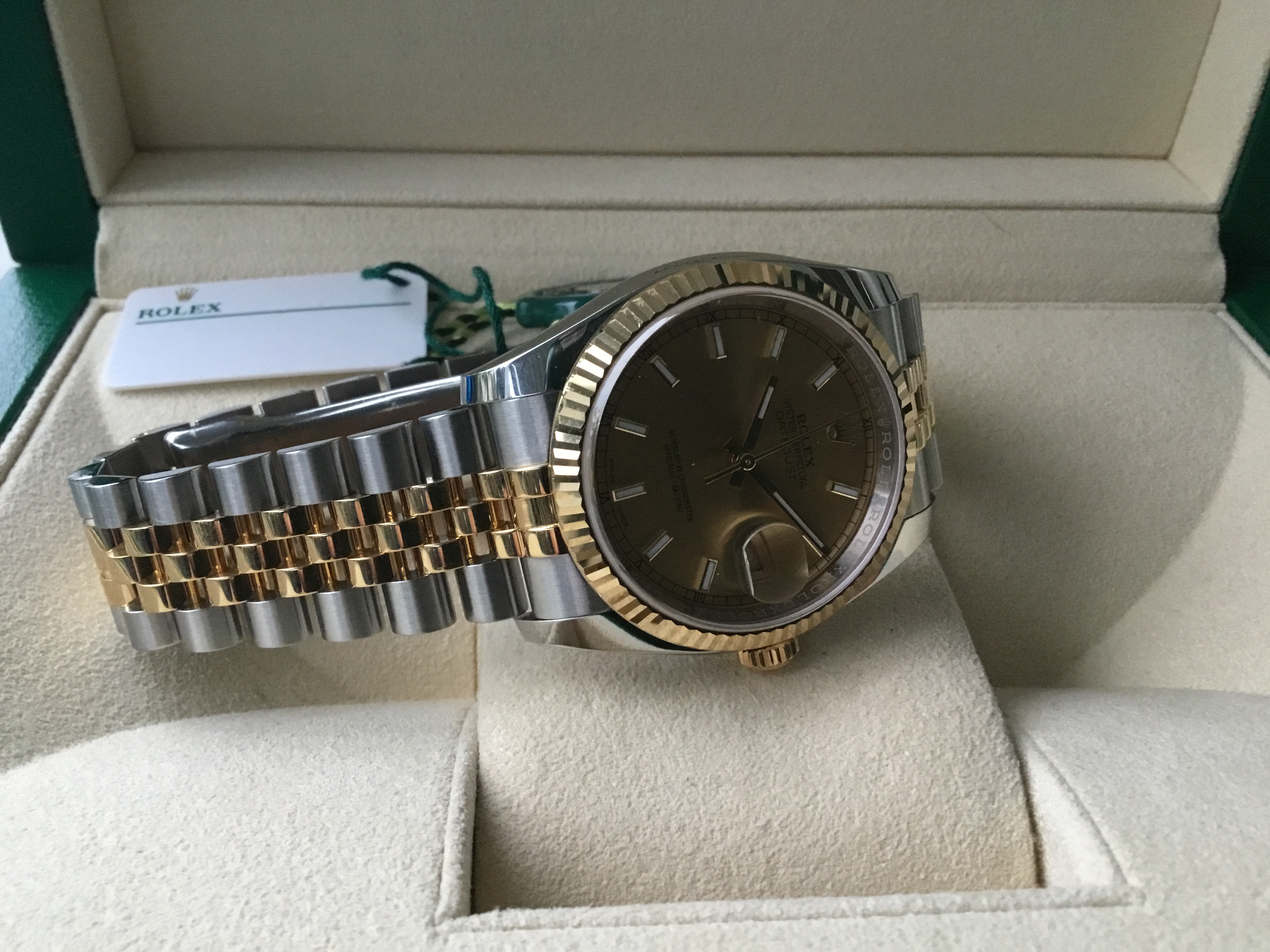 | 2009 MINT Rolex DateJust Jubilee Two Tone Gold Champagne 116233 Watch Box huntingtonwatch (11909) |