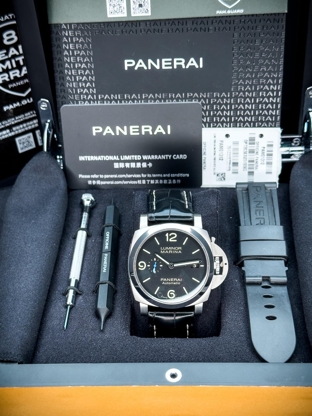 **FS:** PAM 1312 44mm Luminor Marina Complete Set PAM01312 The PAM 1312 is one of the classic models sporting the sandwich dial, date at 3 and the iconic blue seconds hand. At 44mm with the 1950s case this is so comfortable on the wrist. Currently on the black croc strap but you can give it a more sporty feel with the included rubber strap. **Condition**: Very good condition showing very minimal signs of wear. Detailed photos shot in macro to highlight any imperfections. **Included**: Double boxed, manual, warranty card (dated 2022), UPC stickers, both tools, extra rubber strap. **Price**: $4997 Payment via **Wire, Zelle, or Credit Card** (+3.3%) Fully insured overnight shipping via FedEx included. \-Many 5-Star reviews on Google, Ebay, and Chrono24 \-Verified references available \-Always happy to hop on FaceTime to answer any questions and let you see the watch live. 📷 IG: @CastleWatchSupply 📍 Located in Dallas, TX Timestamp: [https://www.dropbox.com/scl/fi/up0jwjss3zmvaik9sld40/IMG\_4616.jpg?rlkey=74vg8lgngoscrrx2a5ykwyn0f&st=kldjdiuv&dl=0](https://www.dropbox.com/scl/fi/up0jwjss3zmvaik9sld40/IMG_4616.jpg?rlkey=74vg8lgngoscrrx2a5ykwyn0f&st=kldjdiuv&dl=0)