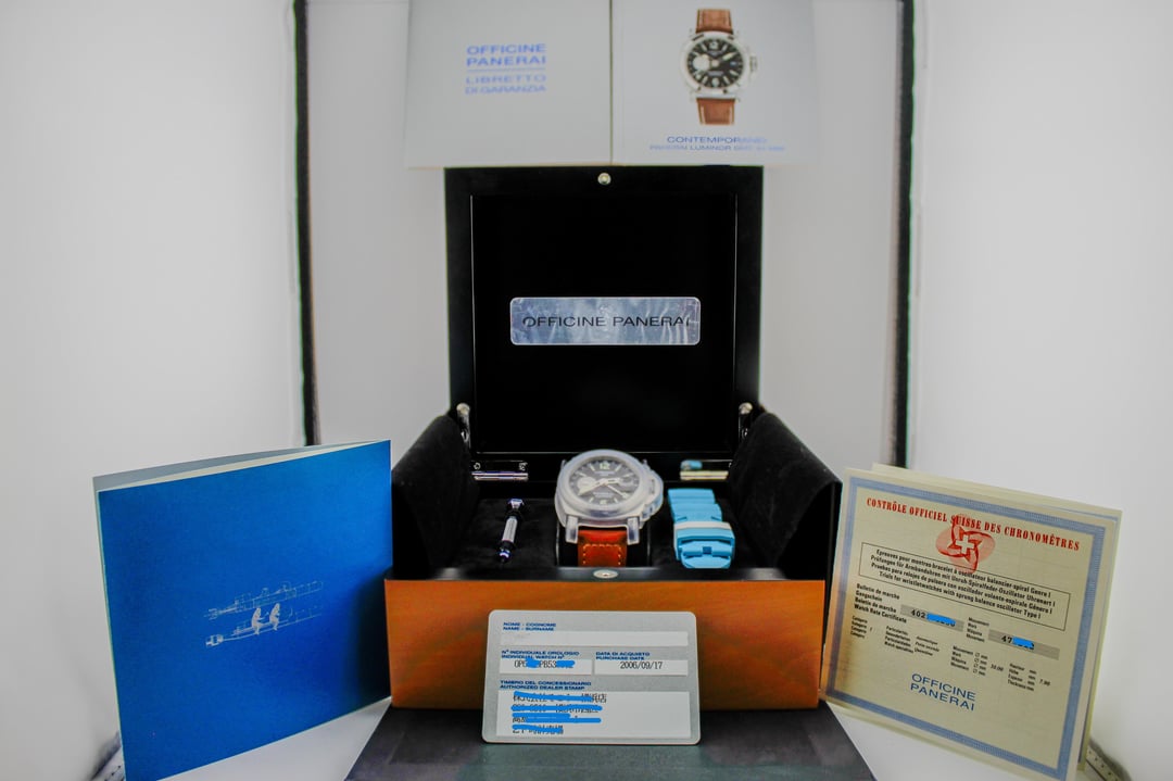 🚨AVAILABLE🚨 2006 Panerai Luminor GMT 44mm Ref: PAM00088 Timestamp: https://imgur.com/a/RchTiDG 🚨2 YEAR PANERAI WARRANTY🚨 $4400 shipped (Fedex Overnight- Fully Insured) 📍Jersey City, NJ Palazzo di Luxury - all platforms Includes: Panerai 2 year warranty (Panerai Service Receipt dated November 5, 2024) ✅ Double Box✅ International Warranty Card✅ COSC certificate✅ Booklets/Manuals✅ Panerai tool ✅ Panerai Light Blue Rubber strap (receipt from Panerai Boutique in Florence, Italy)✅ Panerai Brown Leather Strap ✅ Panerai Black Alligator Strap✅ Panerai Folded Deployment Buckle ✅ Panerai Tang Buckle ✅ ‼️This timepiece is part of a limited edition series, with only 3000 available worldwide‼️ Tons of reference so deal in confidence. I strive for full transparency and am open for a video call to show the watches condition and answer any questions. **We use a strong macro lens for our photos/videos which may make imperfections appear larger or worse than they actually are** Please reach out if you have any questions