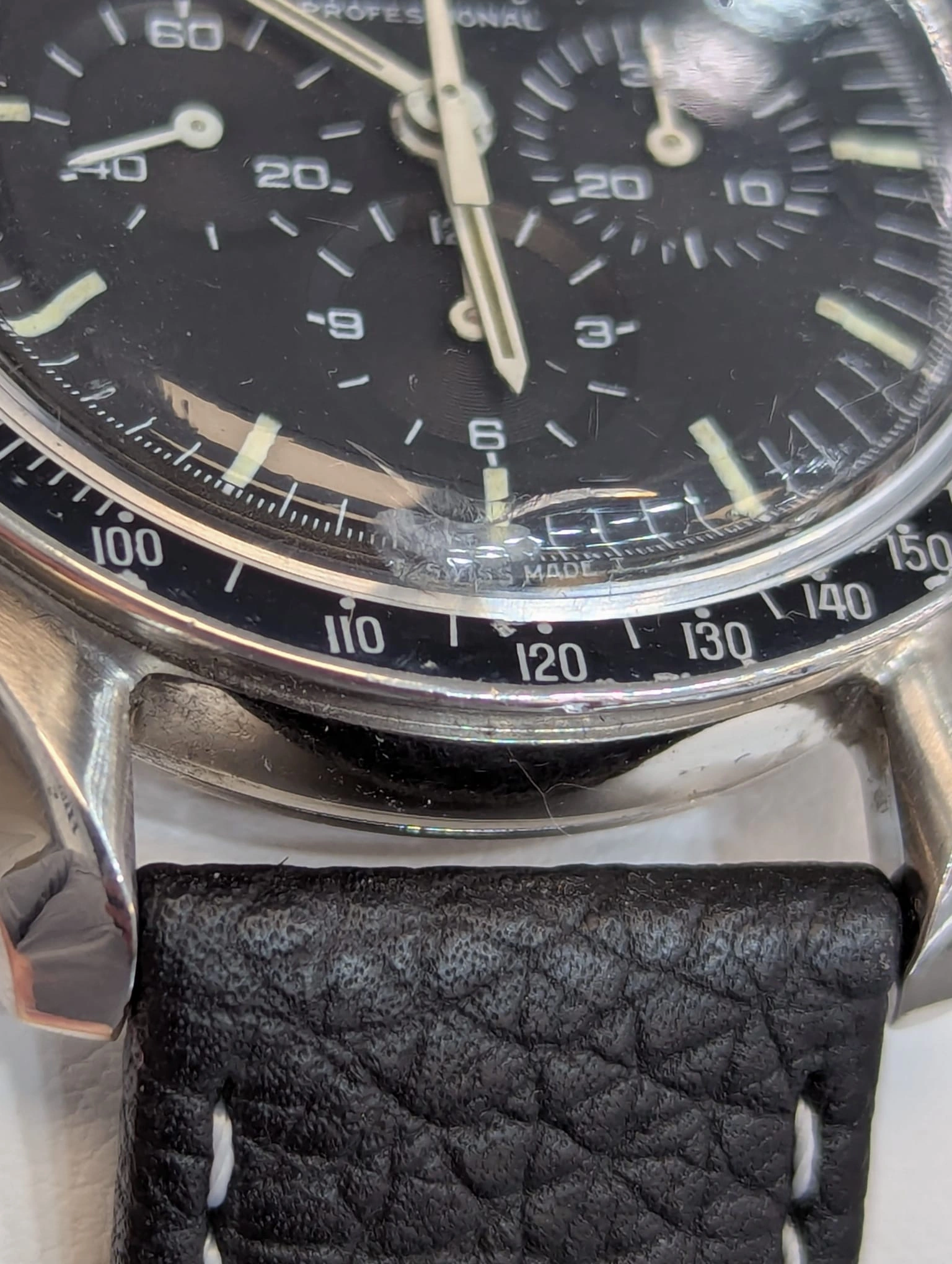Up for grabs is an omega speedmaster 145.022-69 from the collection. All original and recently underwent a watchmaker adjustment (not full service). Running well with chronograph running well. All period correct with DON bezel. Serial 3058xxxx putting it in correct 69 range. Crystal needs replaced if new owner wishes. Price reflected of that.