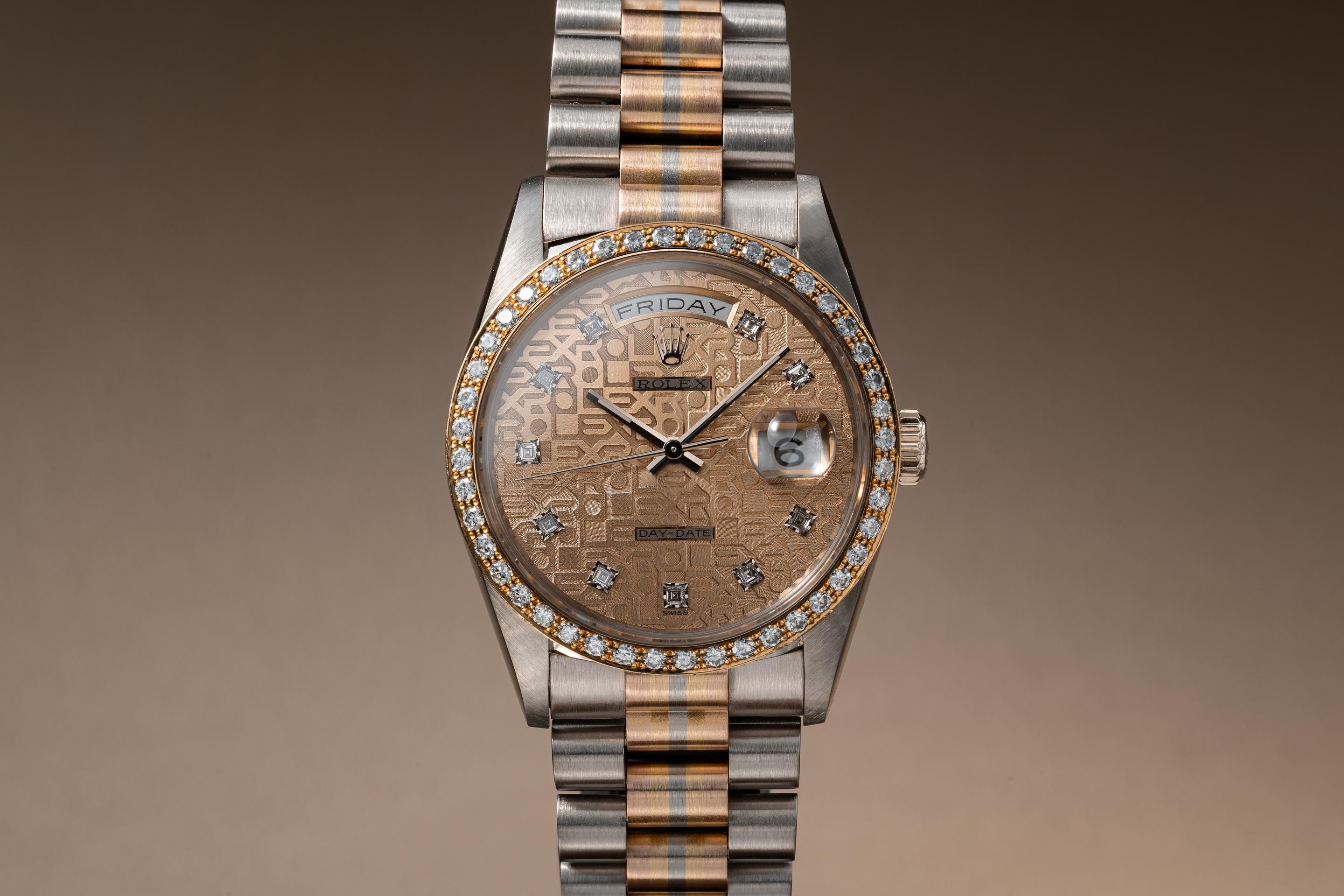 FS: 1989 Rolex Diamond Bezel Tridor Day-Date 18349 Salmon Jubilee Diamond Dial