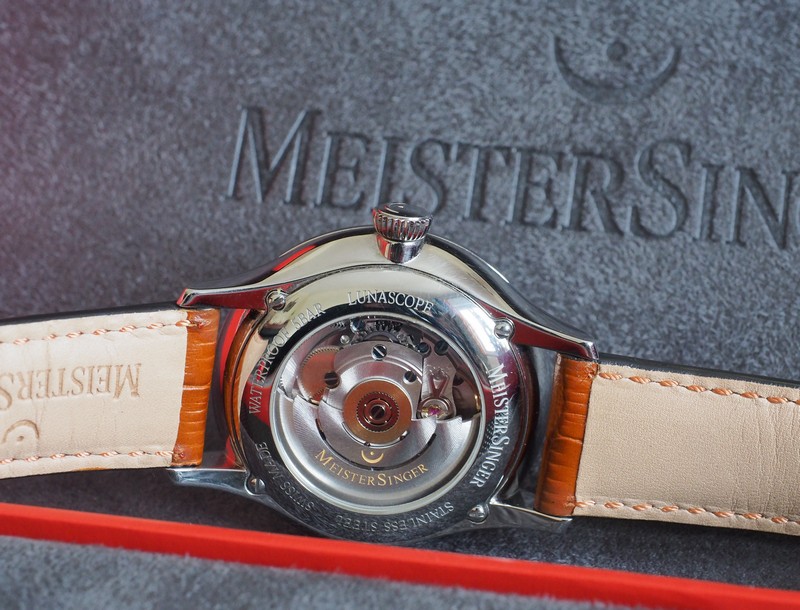 Equipé d'un mouvement ETA 2836-2, battant à 28800 a/h, avec un module spécifique pour la phase de Lune, développé par MeisterSinger.
