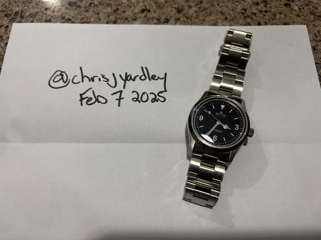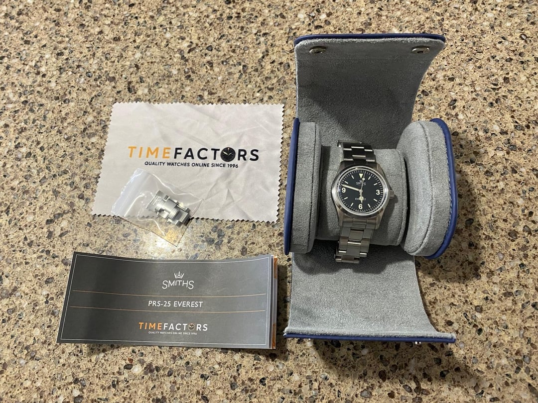Hi all, Looking to sell my Used but good condition Smith's Everest PRS-25. Watch is sold out and currently unavailable. Keeps great time and has some scuffs on the bracelet but no major dings, nicks or scuffs on the case, bezel or glass itself. Selling due to lack of wrist time. Includes all the links, the carrying case and the papers. Seeking $499 shipped within the CONTUS. Can accept PP FF Or Wire. Thanks all,