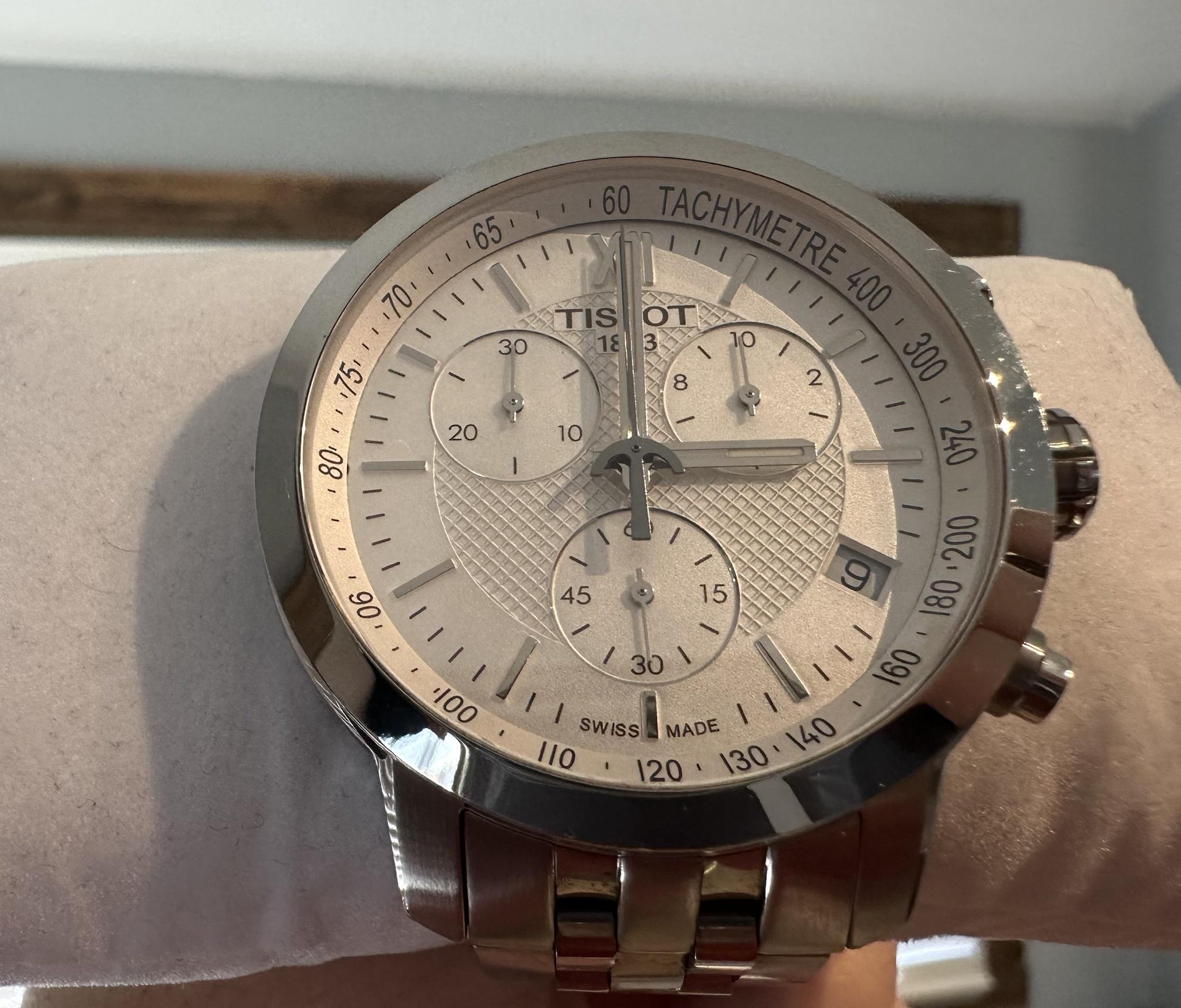 Timestamp & Photos: [https://imgur.com/a/tossot-prc-200-white-waffle-quartz-z7YoO0p](https://imgur.com/a/tossot-prc-200-white-waffle-quartz-z7YoO0p) For sale is a Tissot PRC 200 White Waffle Dial Quartz Chronograph watch. T055.417.11.018.00 I'm the only owner and frankly did not wear much as it was too bulky for my taste. (42mm) Bought Aug 6th, 2019, in Seoul, Tissot dealer in Lotte Department Store (shown in Pic) Changed Battery 1/2/2025 in Local Jeweler. $220 incl shipping CON US Venmo F&F or Wire accepted