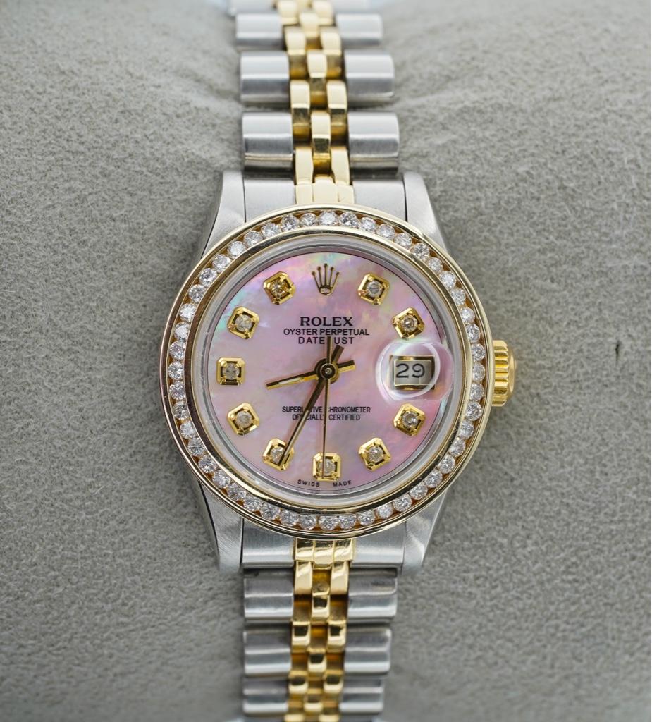 Rolex Datejust ladies 69173 Custom MOP Diamond Dial and Diamond Bezel Boxes/Papers