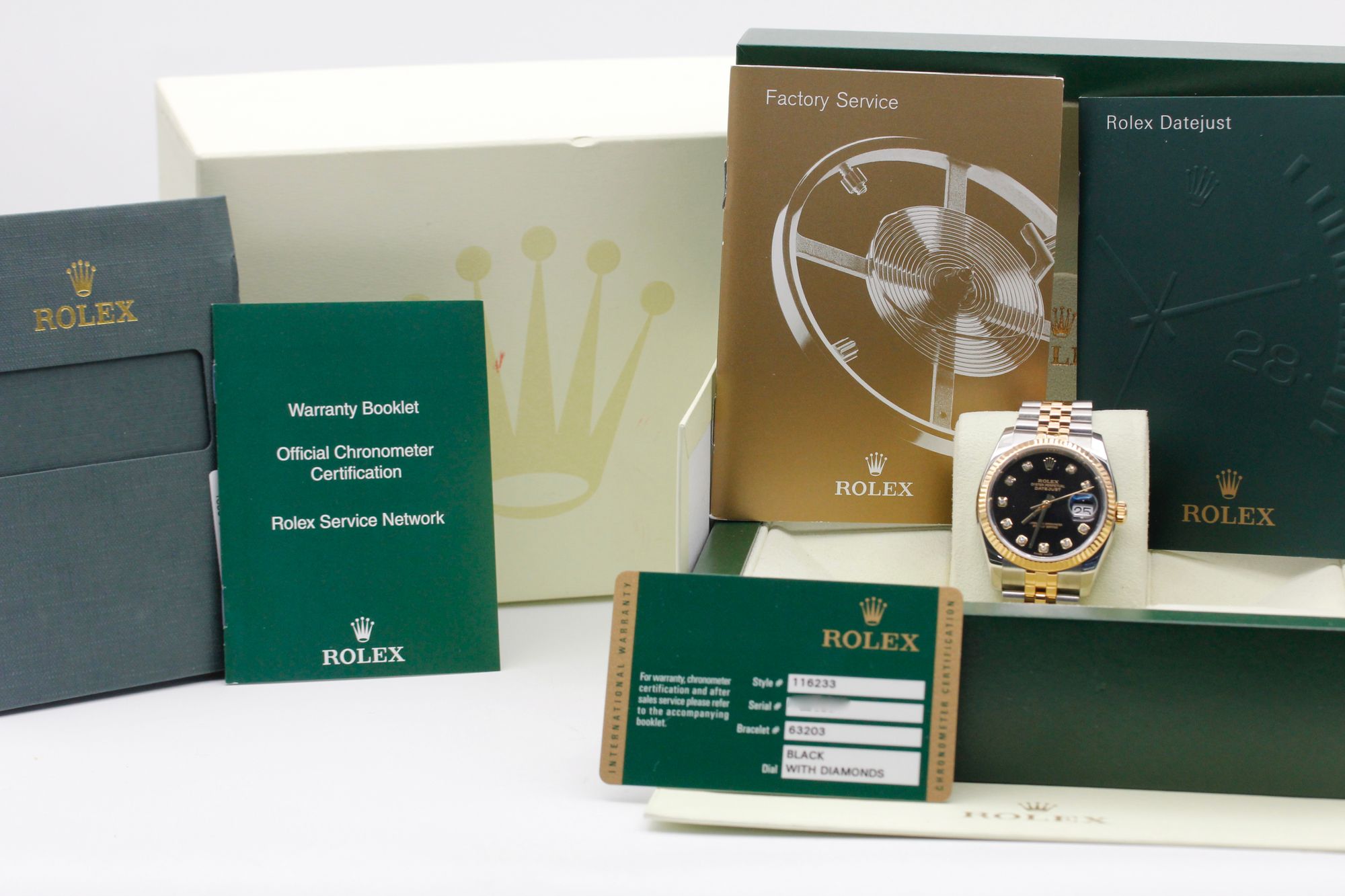 | Rolex Datejust 116233 Watch 36mm Black Dial Two-Tone Oyster I BOX & PAPER goldumnyc (37880) |
