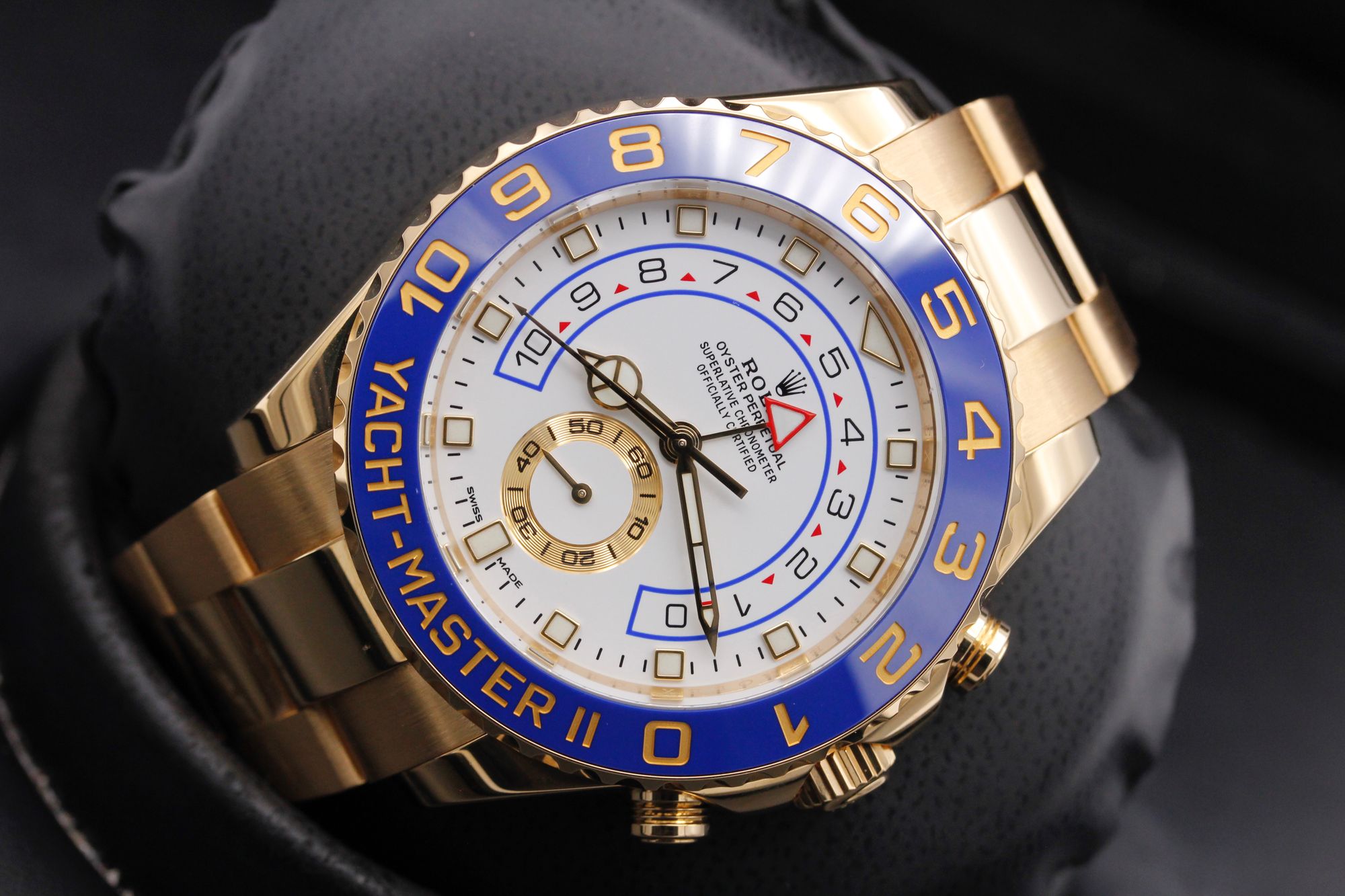 | NOS Rolex Yacht-Master II 18k Yellow Gold Blue Ceramic Bezel B/P '23 116688 jewelsintime (2989) |