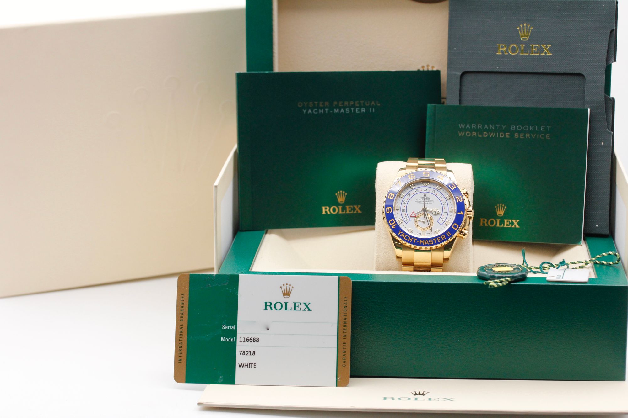 | Rolex Yacht-Master II 18K Yellow Gold White NEW HANDS Regatta 44mm 116688 BOX collectorswatches (8900) |