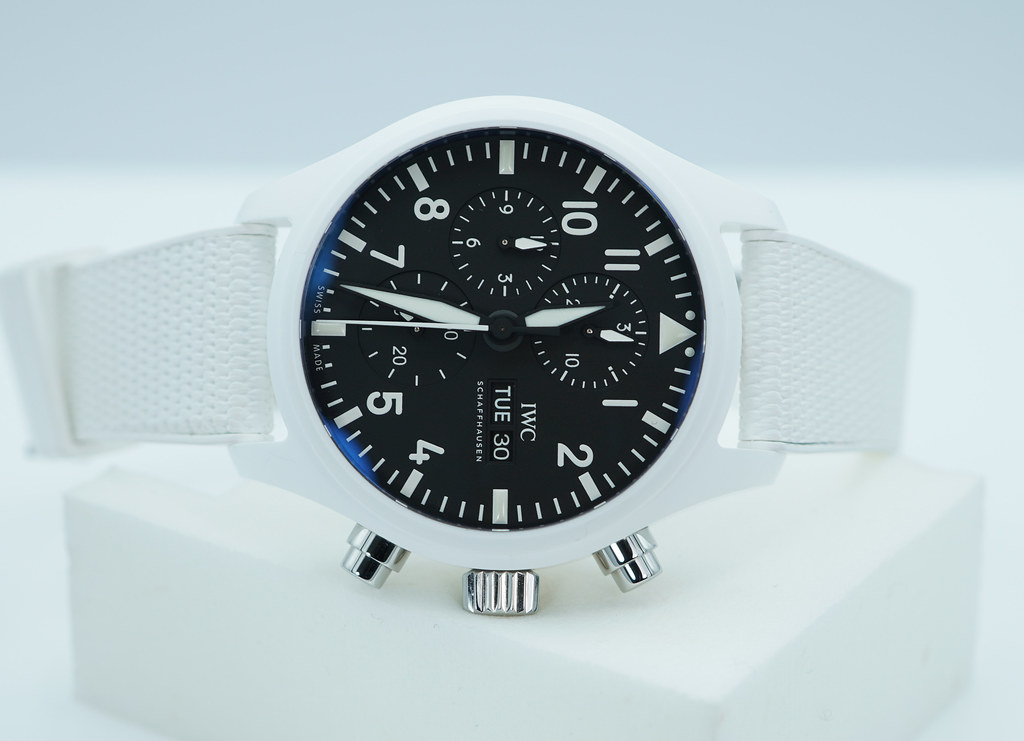 Hi, Selling An Excellent Condition & Very Beautiful 2023 44.5mm Iwc Pilot's Watch Automatic Chronograph Top Gun "Lake Tahoe" White Ceramic Case. Its on White Rubber Strap with Deployant Clasp. Purchased from IWC Authorized Dealer in 07.2023. Watch Running Perfect with Non Issues. Full Set & Under 8 Years Factory Warranty.