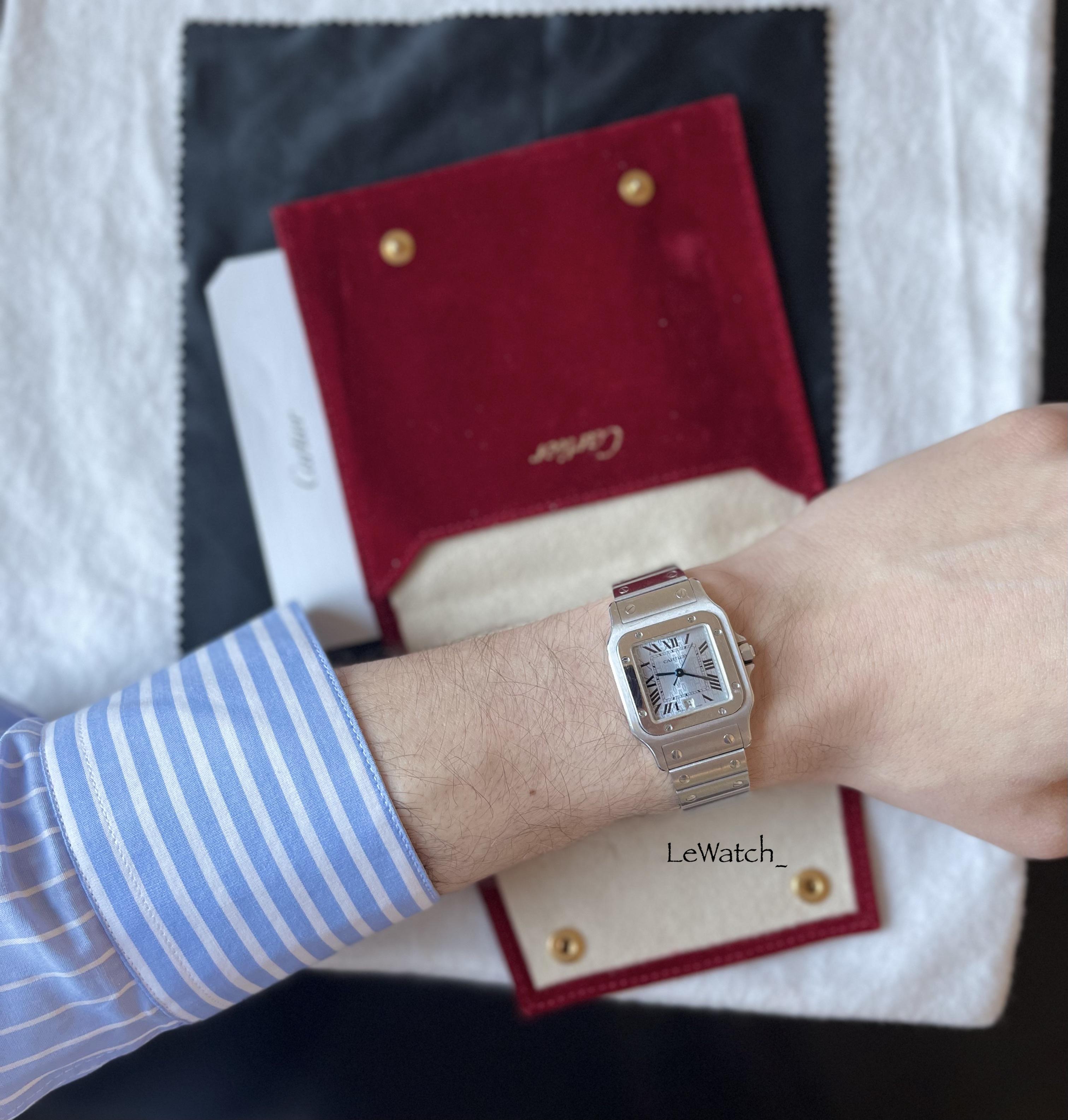 **Cartier Santos Limited Edition Platinum Blue Dial Galbee Quartz Gents 29mm (Ref. 1564)** Up for sale is a stunning **Cartier Santos Limited Edition** with a **platinum blue dial**, a rare and highly sought-after timepiece that embodies elegance and precision. Limited edition watch made specifically for Europe, only 2000 ever made. The watch is an excellent condition and has never been polished. * **Authentic Swiss-Made Cartier Quartz Movement** – High precision with hack second and quickset date functions. * **29mm Stainless Steel Case** (excluding crown) – A classic size, perfect for a sophisticated look. * **Limited Edition Platinum-Colored Dial** – Features **"Cartier Swiss Made"** branding, **Roman numeral hour markers**, and a recurring ‘C’ insignia. * **Stainless Steel Screw-Down Caseback** – Engraved with the Cartier insignia, model, and serial number for authenticity. * **Secret Signature at the 7 O’Clock Marker** – A discreet detail that signifies Cartier’s craftsmanship. * **Signature Cartier Blue Cabochon Crown** – A hallmark of Cartier’s luxurious design. * **Hidden Butterfly Clasp** – Cartier-signed stainless steel clasp for a seamless, elegant finish. **Time stamp:** [https://imgur.com/a/oeiRNeA](https://imgur.com/a/oeiRNeA) **Extra pictures**: [https://imgur.com/a/w3eBKZO](https://imgur.com/a/w3eBKZO) **Instagram:** LeWatch\_\_ 💶**Price**: 5600 E 📦 **Includes:** Watch only, comes with a Cartier pouch. (On request in can get serviced at Cartier) 💳 **Payment:** Wire/Pay Pal 🚚 **Shipping:** I am located in Europe but willing to ship it anywhere. **Feel free to reach out for more details or additional photos!**