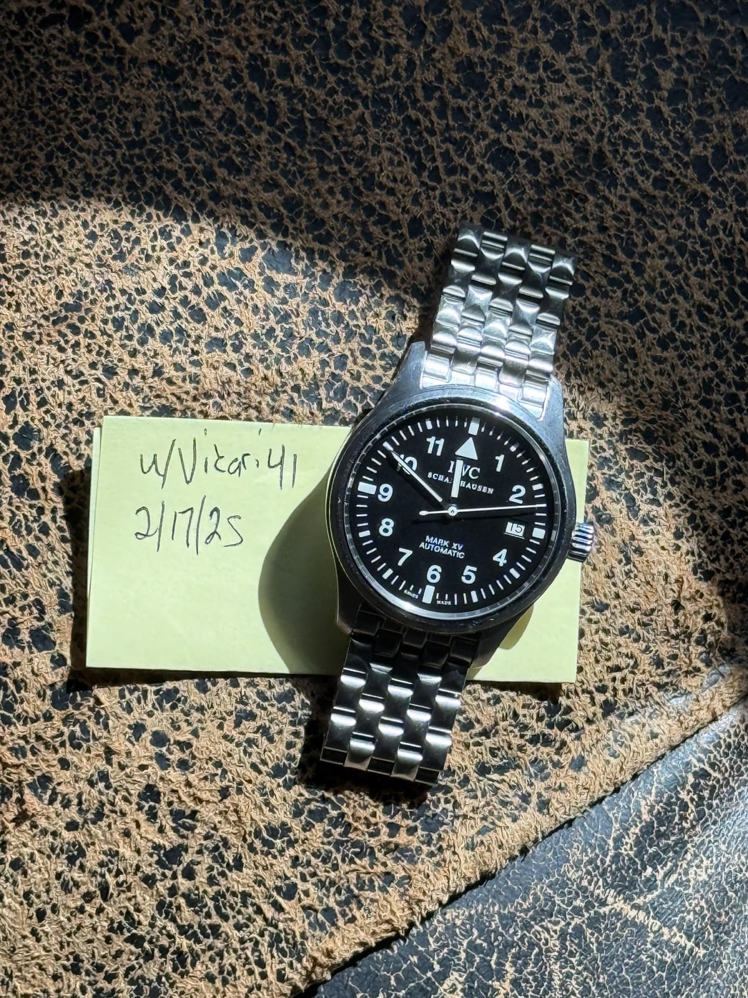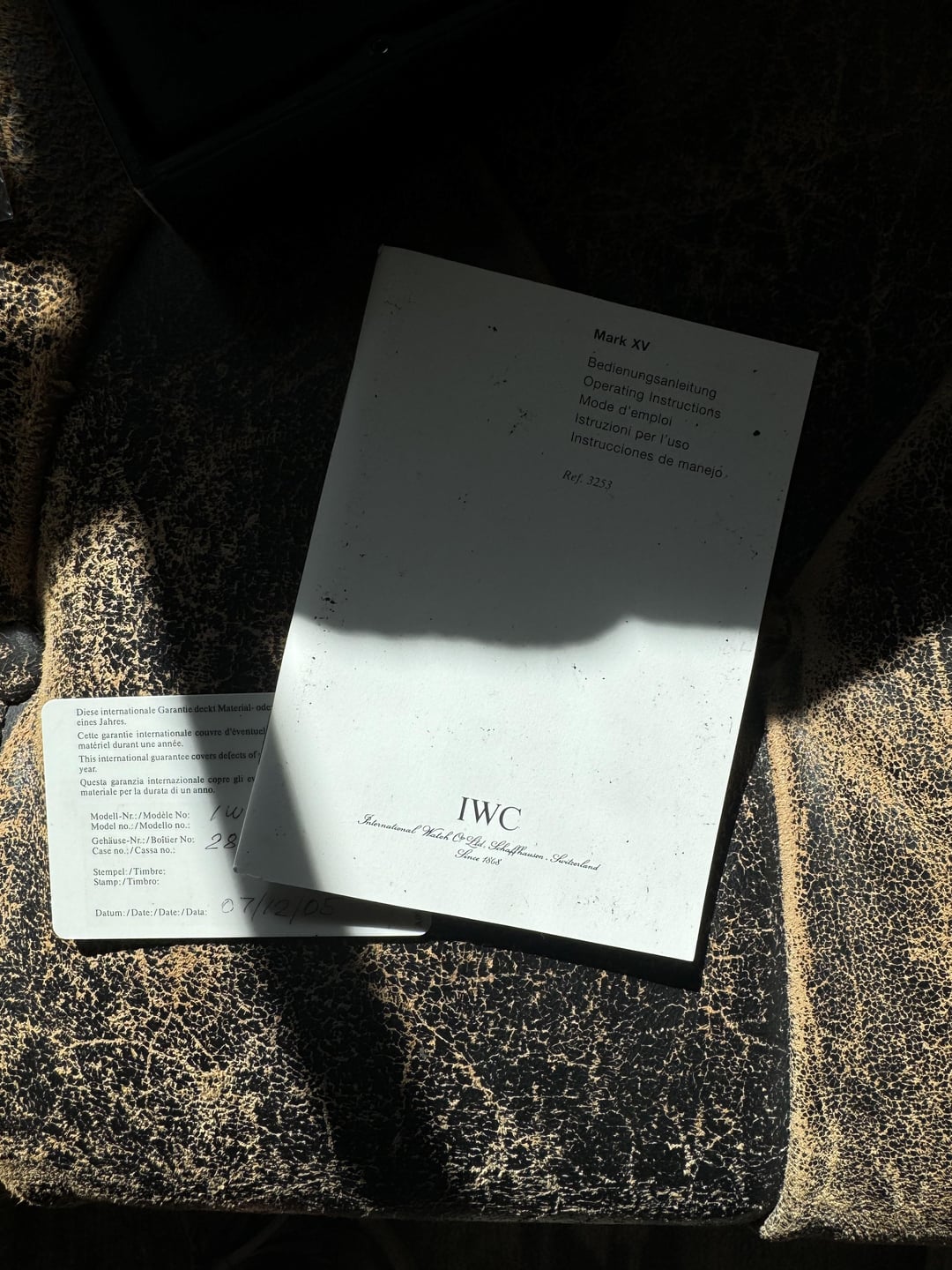 For Sale: IWC Mark XV – Classic Pilot’s Watch (Recently Serviced by IWC) Price: $4,200 USD Up for sale is my IWC Mark XV, one of the most beloved iterations of the Mark series. It perfectly balances vintage aviation heritage with modern reliability. This watch was fully serviced by IWC in 2024, ensuring it runs flawlessly for years to come. Details: • Reference: IW3253 • Case Size: 38mm • Movement: Automatic (IWC-modified ETA 2892-A2) • Dial: Black with highly legible Arabic numerals • Crystal: Sapphire • Bracelet/Strap: Comes on [insert strap/bracelet details] • Condition: Excellent for its age, normal wear but nothing major. Runs well and keeps excellent time post-service. • Service: Full service completed by IWC in 2023, ensuring peak performance. Documentation available upon request. This is a fantastic option for someone looking for a no-nonsense, historically inspired pilot’s watch that wears perfectly in a modern collection. Shipping & Payment: • Will ship within the U.S. (international buyers, please inquire) • Payment via wire, Zelle, or PayPal F&F for established buyers • Plenty of references available DM for additional photos, questions, or offers. Thanks for looking!