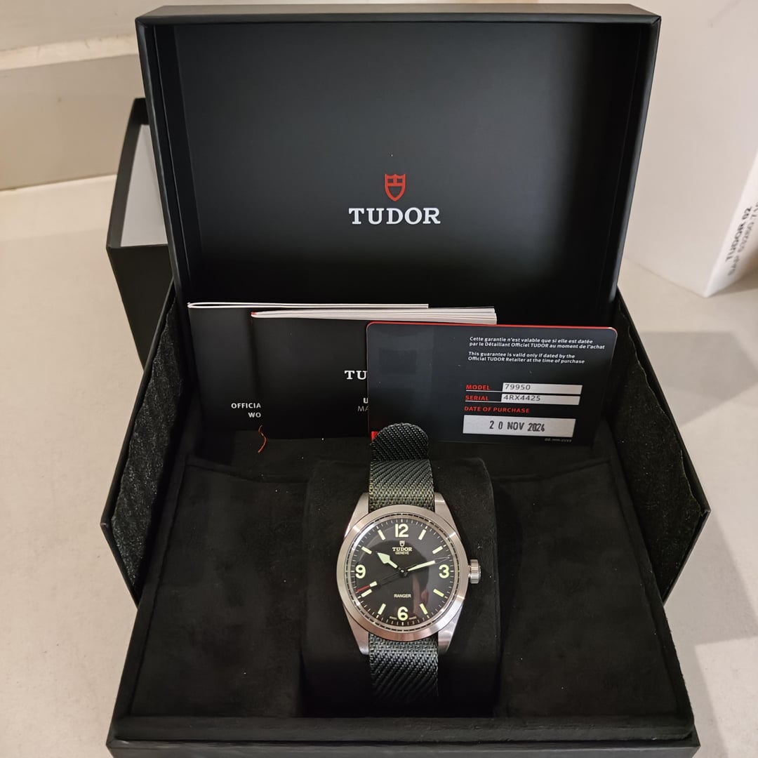 **Tudor Ranger 39mm M79950-0001** Condition: Mint Box and Papers: Yes, dated November 2024 (Warranty till November 2029) What's Included: Watch, Double box, Papers 💰 Price: USD$1,815 FIRM (Including Shipping, no tax / duties to US) 💳 Payment Method: Zelle, Venmo, USDT, Wise 📫 Shipping Method: Worldwide via Fedex International Priority Timestamp: Last image in album Description: Hi Watchexchange, today I have a Tudor Ranger 39mm up for sale. Watch only comes with the aftermarket nato strap as pictured. One of the best and most popular GADA watches ever released. The matte finishing of the case pairs nicely with the matte dial. Price is firm, only PM if you are agreeable to the price or have questions about the piece. Happy to hop on a call to show the piece to any interested buyers! Not looking for any trades, thanks!