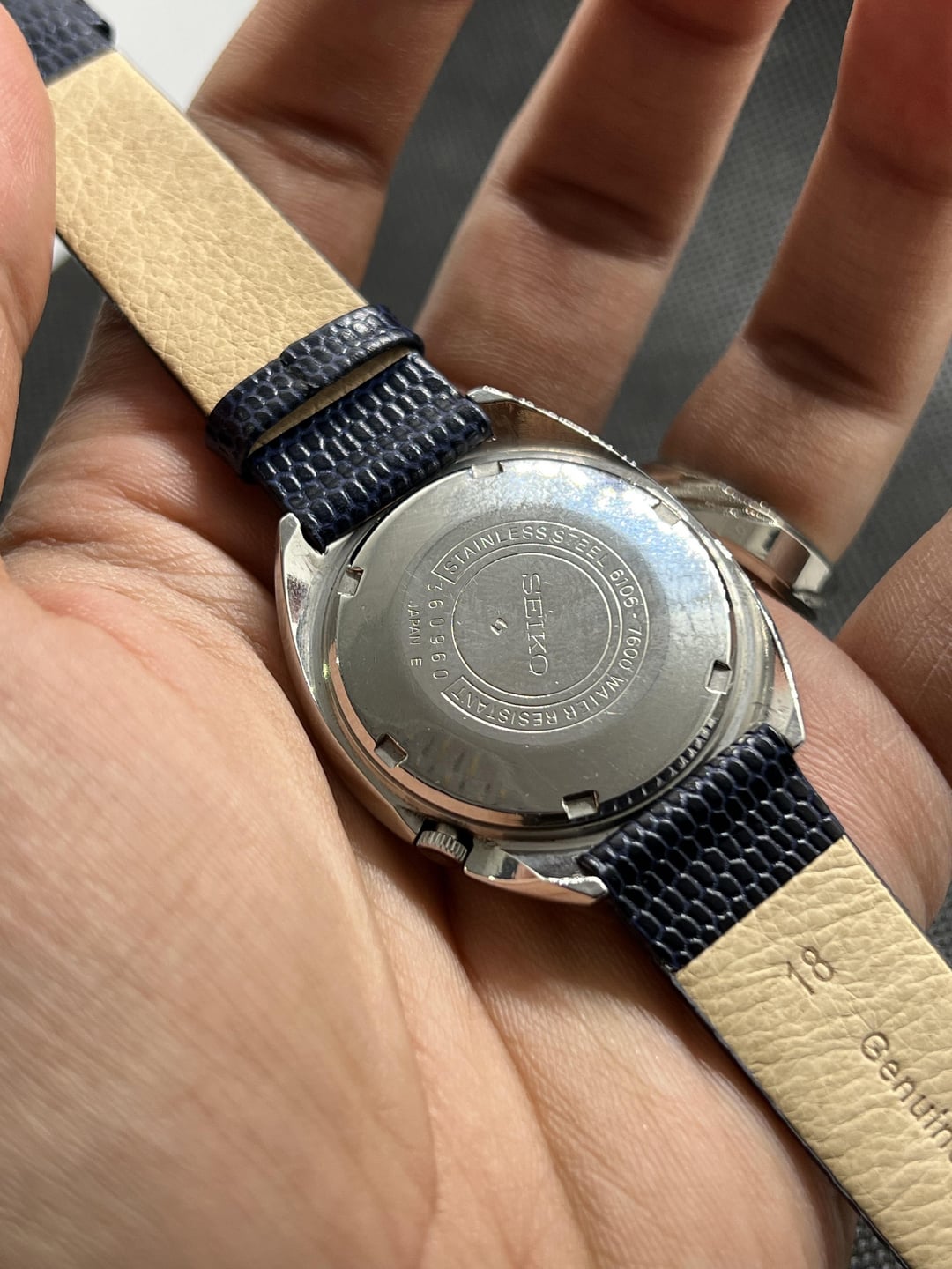 Timestamp in the end Seiko Actus SS . 38mm. Automatic. Cal. 6106 Movement dated June 1973. Only watch with Aftermarket strap. Gorgeous blue dial with Multi-faceted crystal USD $265 shipped worldwide via FedEx. Payment via Zelle, PayPal FF, Crypto.