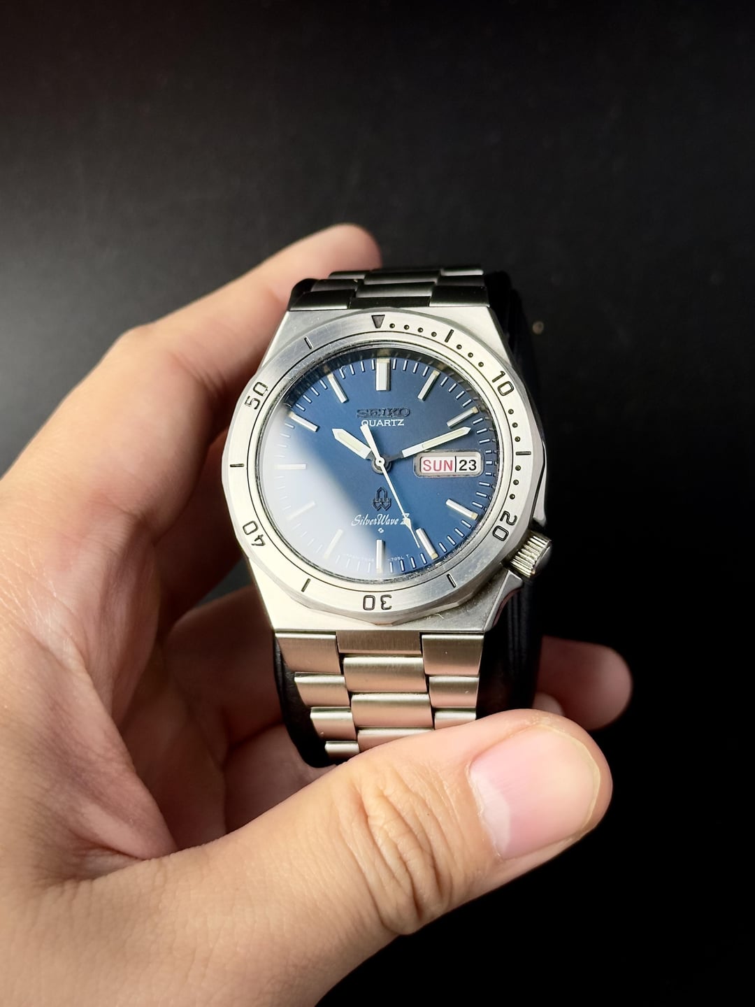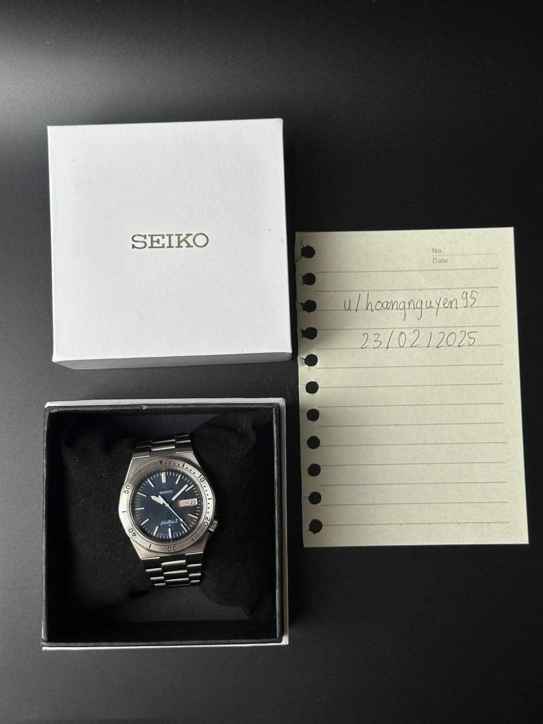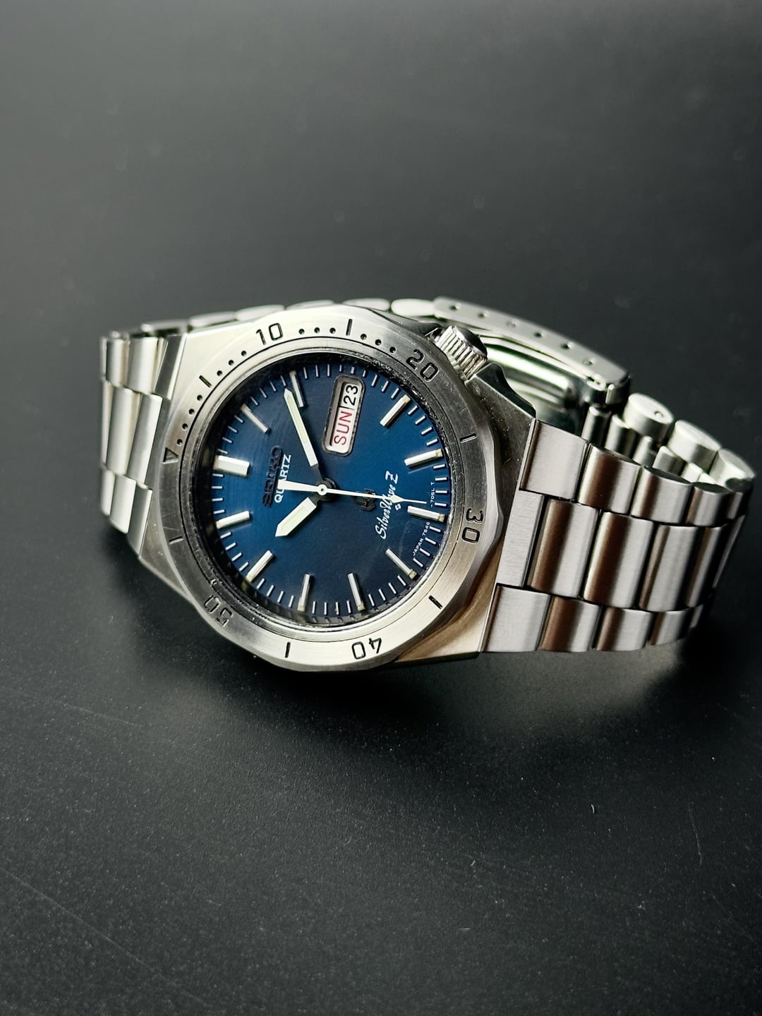 Up for sale is a Seiko 7546-7040, a standout piece from the SilverWave family—Seiko’s first line of watches built for diving in excellent condition Images: https://imgur.com/a/1ANyoux Timestamp: https://imgur.com/a/ki18ahg Video: https://imgur.com/a/DGspNUo What makes this one special is its space blue dial, which shifts in shade depending on the lighting. The crisp white printing and hands create a striking contrast, ensuring excellent legibility even in low-light conditions. The integrated lugs and dodecagon bezel give it a distinct luxury sports watch feel, reminiscent of Genta’s design language seen in the Royal Oak. Like most SilverWave models, this one comes with a screw-down crown and caseback, built for durability. And being a JDM model, it features the sought-after English/Kanji day wheel—a detail that collectors love. The watch is in excellent condition, with only a few minor hairline scratches visible upon close inspection. The bezel has been lightly polished to restore its shine without compromising its character. The movement has been cleaned, and a new battery has been installed, ensuring reliable performance. The bracelet comfortably fits wrists up to 18.5cm. It comes with a standard Seiko box. Price: $475 (shipping included). Payment via PayPal F&F or G&S (buyer covers +4.6% fee). No trades please. Feel free to message me with any questions or if you’re interested. Have a great day! Check out my other watches on Instagram: @jasonswatchcorner