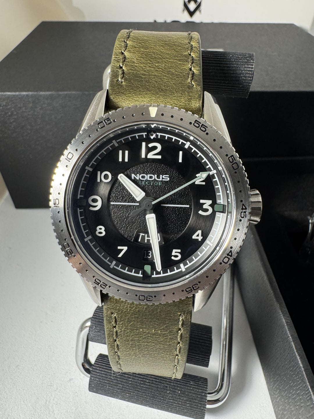 Stunning Nodus Sector Pilot Blackbird, excellent pre owned condition, comes as a full package, bracelet has Nodus X clasp and it’s unworn, wrapped in plastic. Price is $385 shipped anywhere in CONUS.
