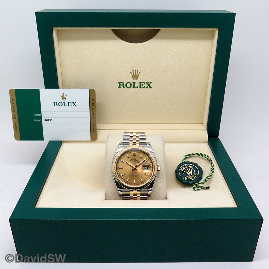 | Rolex Datejust 116233 Two-Tone 18KY & Steel Champagne Index Jubilee 36mm Watch luxuriantwatchconcierge (887) |