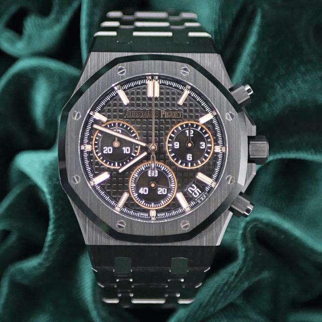 Up for sale is Audemars Piguet Royal Oak in Black Dial and Black Ceramic. Introduced in 2022 for the Royal Oak’s 50th-anniversary collection, this timepiece features a 41mm case crafted entirely from black ceramic. The black Grande Tapisserie dial is accented with pink gold hour markers, hands, and counter rings, along with a discreet date display at 4:30 – representing the collection’s latest design evolution. The contrast of pink gold against the black ceramic gives this timepiece a modern edge that quietly commands attention. Presents itself in mint condition with little to no signs of wear. The bezel features a beautiful brushed top surface with polished edges that catch the light with every movement. Showcases a case with vertical brushing on the side that gives the watch an angular look while the exhibition caseback reveals the self-winding caliber. Functions include hours, minutes, seconds, date, and chronograph. Features an impressive 70-hour power reserve and is water-resistant up to 50 meters. It also features luminous hour markers and hands for easy readability in low-light conditions. Comes as a full set, double-boxed, including the watch pillow, warranty card, a tool for link replacement. With its blend of luxurious materials and practical features, this watch speaks to those who know that time is a resource to be mastered – not wasted. Please excuse any dust, fur, reflections, or any other hard-to-avoid elements in the photos. We can take additional photos or videos upon request. Price: $119,495.00 shipped overnight fully insured with signature required to your nearest FedEx Office for hold/pick up. [TIMESTAMP](https://imgur.com/NqeXkDM) [PICS](https://imgur.com/a/vD60p8D) Call/Txt: 626-699-3488 Email: [[email protected]](mailto:[email protected]) Looking for this watch on a different strap or a very similar variation of this watch? Send us a message and ask us! We are stocked with straps/bracelets and get new inventory everyday! How have we achieved 5 Star Ratings and 100% Feedback across all platforms? Experience the Majestix Difference: We will give you a video tour of the watch over a live video call or we can record one for you. This ensures that we have the watch in hand, ready to ship. We video record the packing process for every watch that we ship so you know exactly what to expect when you open your package. Also because insurance requires the video recording in case anything happens to the package and they need to pay out for missing / stolen packages. We send you the video recording so you know exactly what to expect when you receive the package. Check our reviews and/or ask for references regarding our quick and excellent service. High value timepieces shouldn't be shipped any slower than priority overnight. We ship priority over night via FedEx. Every package is fully insured with signature required to a FedEx Office of your choice within the continental USA. International shipping may be available depending on which timepiece you buy and which country you want it shipped to. Different countries have different maximum insurance values. Please message to be sure we can ship to your international location (insurance only covers to specific countries). We are always open to trades. Message us with possible trade-ins!