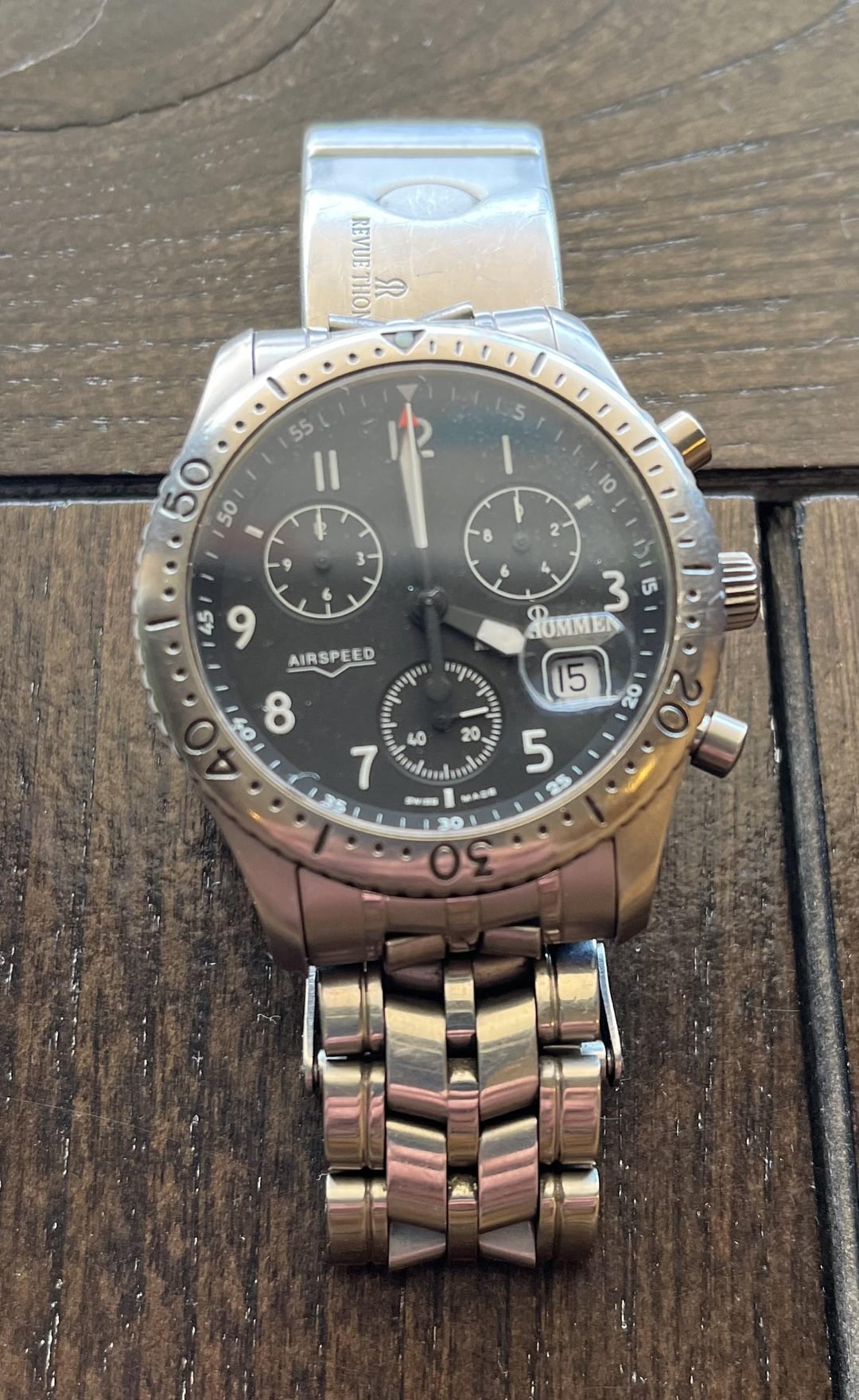 Revue Thommen Airspeed quartz Was a daily wear for a long time,not damage but scuffs like you’d expect from a daily watch Very light,easy to read,functions flawlessly I polished the outer AR coating off of the crystal and had a magnifier glued on $200 shipped in the USA International shipping can be negotiated