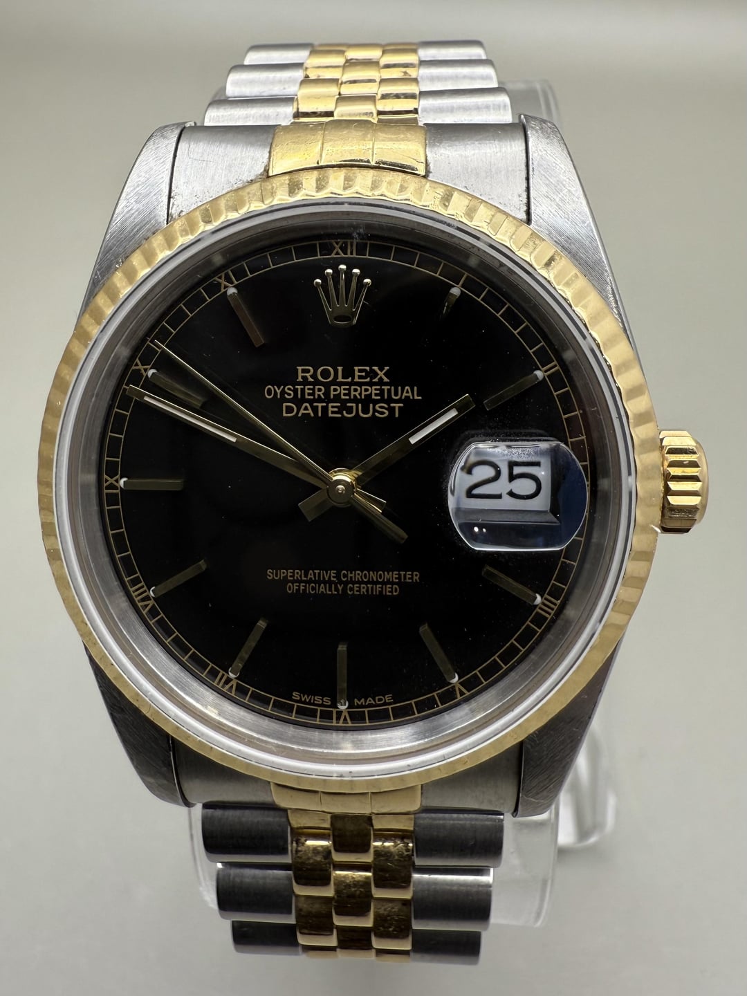 | Rolex Datejust 36 mm Blue Jubilee Dial Steel 18K Yellow Gold Watch 16233 1988 interwatches (10339) |