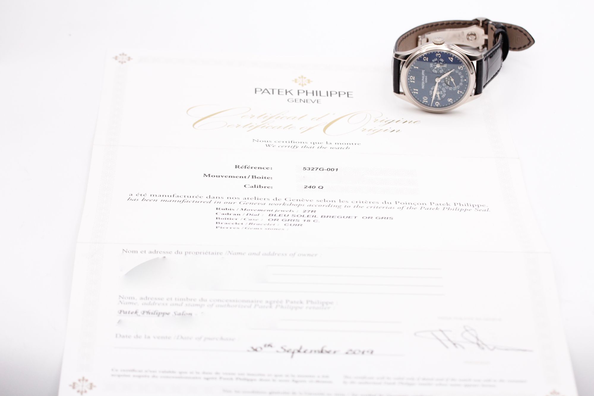 FSOT: Patek Philippe Perpetual Calendar - 5327G-001 - Blue - White Gold - 39mm