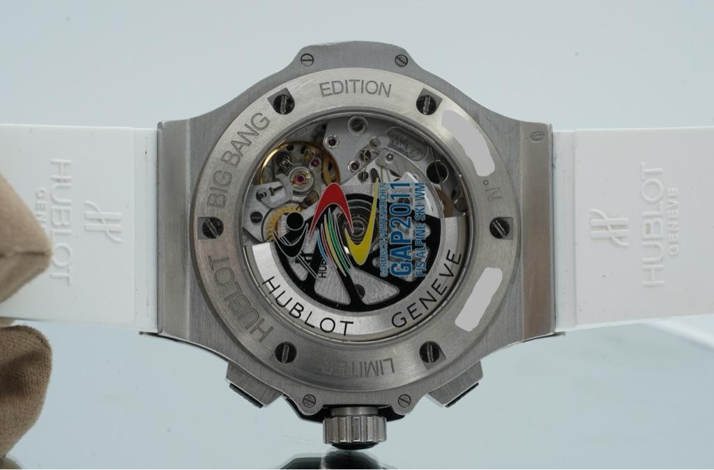 Hublot is the official timer of the World Ski Championships and Hublot invited Maria Riesch to their ambassador team. To celebrate they launched this white Aerobang Garmisch limited edition after the 2011 World Ski Championships.