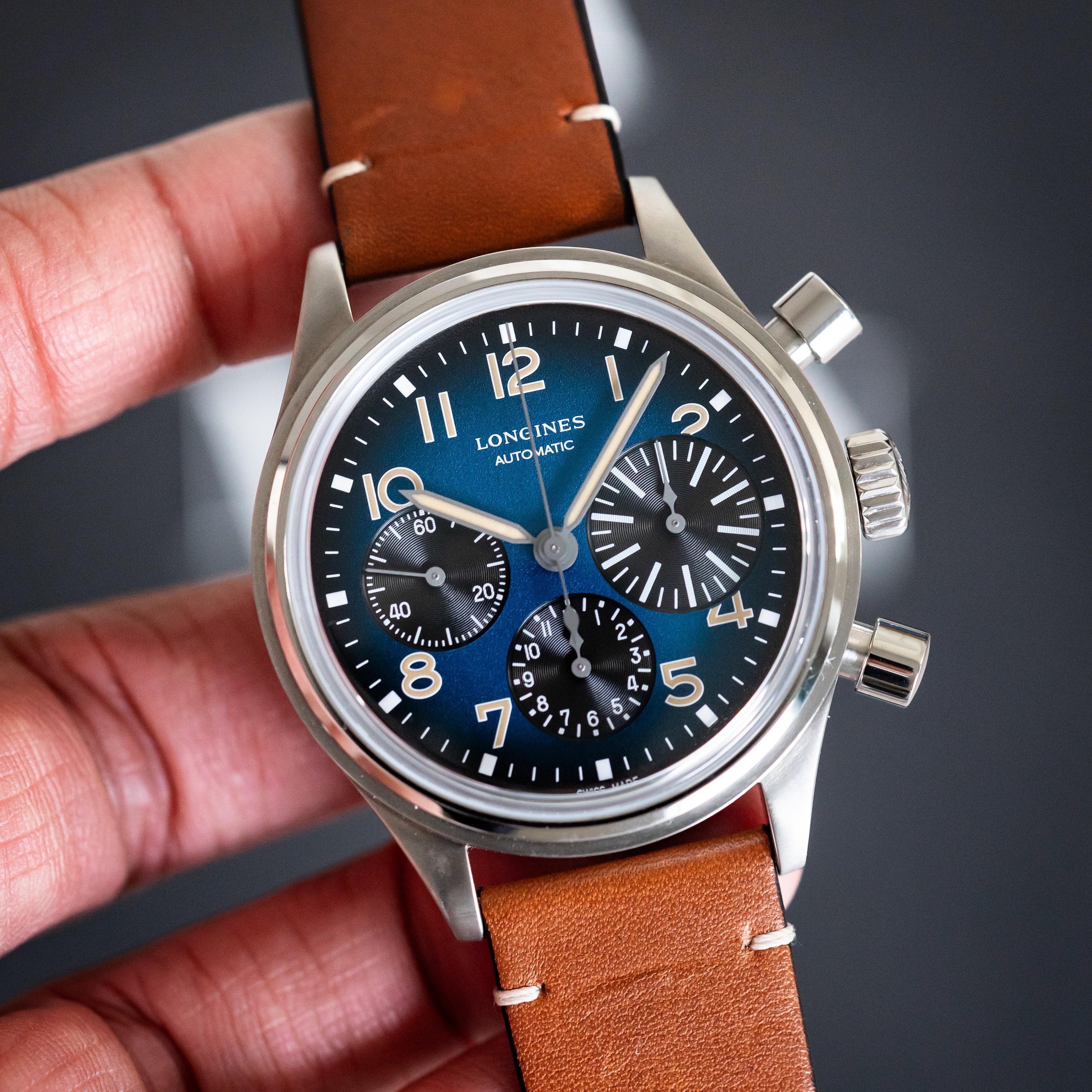 Up for sale is the Longines Heritage Avigation BigEye automatic chronograph in minty condition. This BigEye features a column wheel chronograph movement with a fumé petrol blue dial on a 41mm titanium case. The stainless steel version can feel top heavy but this titanium version sits very well. No issues with the watch. Everything works as it should. The watch comes with the box, manual and undated warranty card. **Priced to sell at $2,250 shipped from Atlanta, GA.** **Not interested in trades.** **Timestamp and pictures:** [**https://imgur.com/a/YaQkrBZ**](https://imgur.com/a/YaQkrBZ) Reference: Case size: 41mm Lug width: 20mm Movement: Longines Caliber L688 Power reserve: 66 hours Water resistance: 100 Full specifications: [https://www.longines.com/en-us/p/watch-the-longines-avigation-l2-816-1-93-2](https://www.longines.com/en-us/p/watch-the-longines-avigation-l2-816-1-93-2)