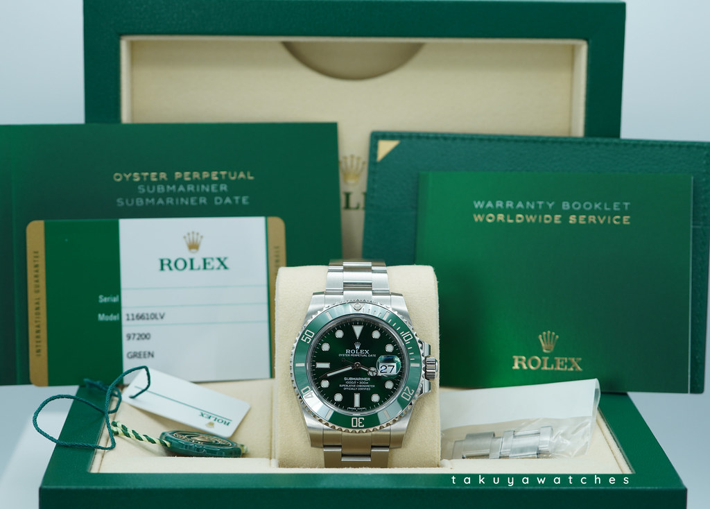 Hi, Selling An Excellent Condition & Very Beautiful Discontinued 2019 40mm Rolex Hulk 116610lv Submariner Stainless Steel with Green Ceramic Bezel & Green Dial. Purchased from Rolex USA Authorized Dealer in 08.2019. Watch running perfect with Non Issues. Full Links & Full Set.
