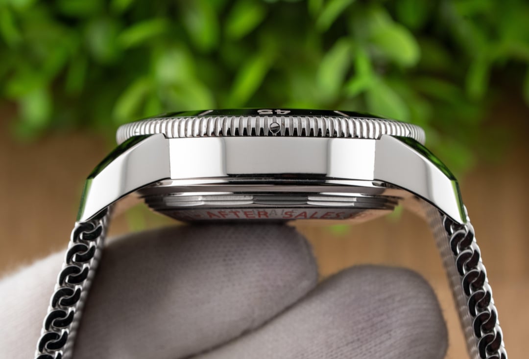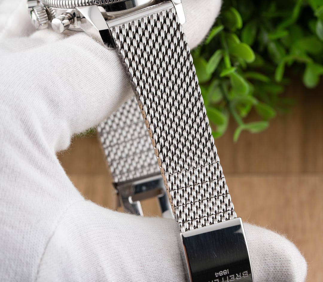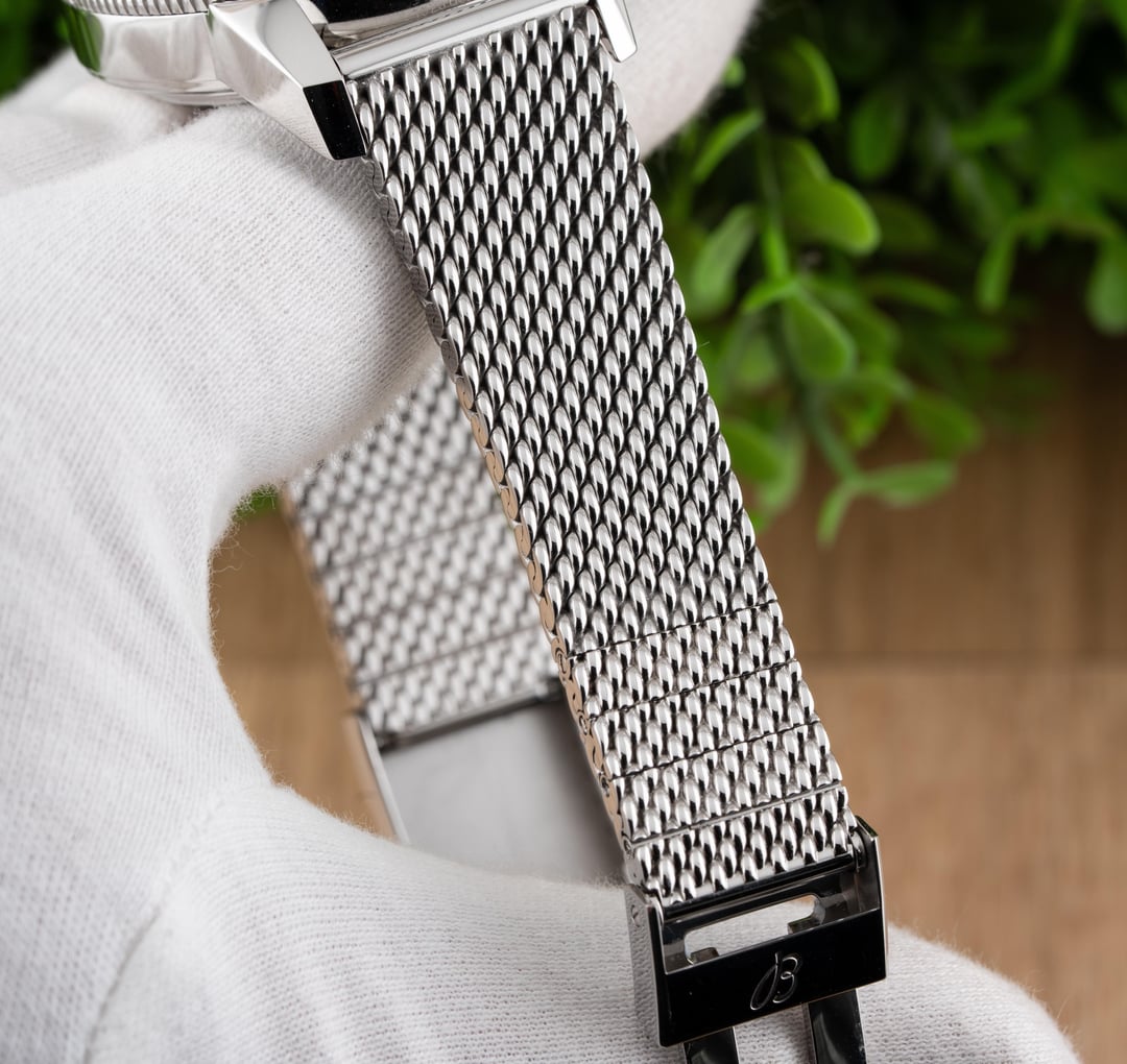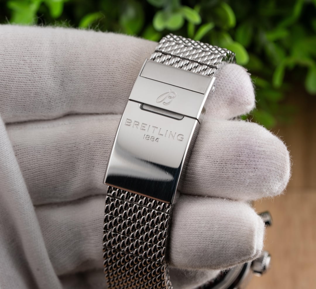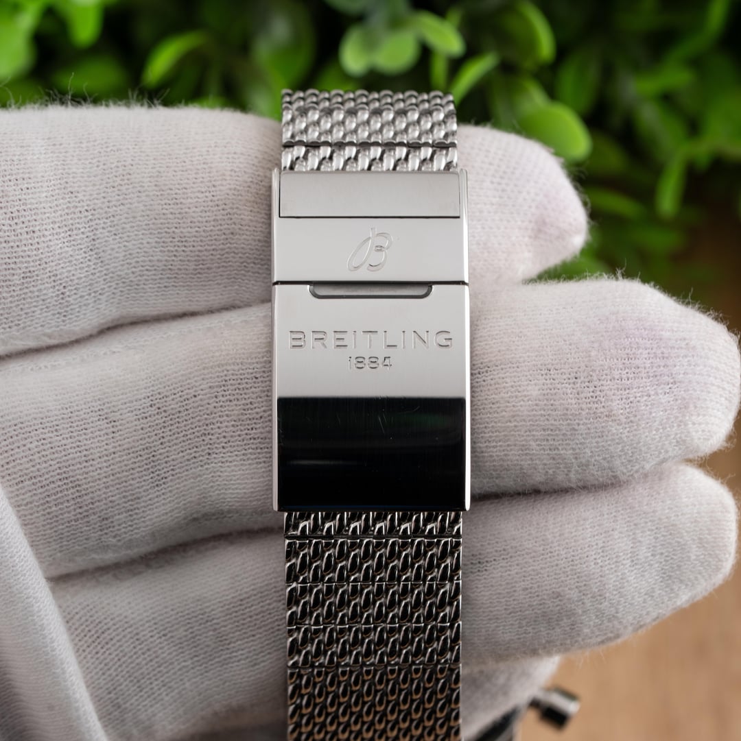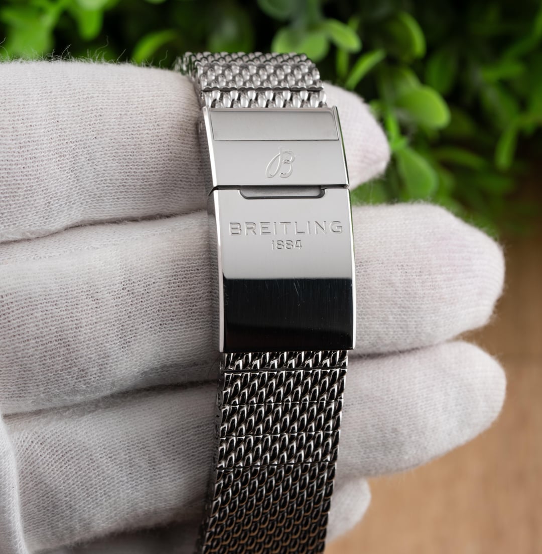 For sale is this beautiful Breitling Superocean Heritage II Chronograph 44!! This stunning piece features the black dial & comes on the stainless steel mesh bracelet! The reference to this timepiece is A13313 Price: $4250 shipped in the USA This watch comes with the full set of box & papers! It includes the Breitling Blue Outer Box, Breitling Blue Travel Pouch/Pillow, Quick Start Guide, and Warranty Card Dated 11/16/2021!! Condition: 9.5/10, this timepiece is in excellent preowned condition and shows only minor signs of wear. Name of Watch: Breitling Superocean Heritage II Chronograph 44 Black On Bracelet Reference number: A13313 MSRP: $6900 + sales tax Movement: Breitling Caliber 13 Case size: 44mm Case material: stainless steel Dial: black Bezel: stainless steel with black ceramic insert Strap/Bracelet: stainless steel mesh bracelet Clasp: folding deployant clasp with safety latch Crystal: sapphire Caseback: solid Functions: time, date, day, chronograph Jewels: 25 Power Reserve: 48 hours Vibrations per hour: 28,800vph Water Resistance: 200M / 660ft Please feel free to contact me with any questions or pricing requests. I sell hundreds of watches per year and have EXCELLENT reviews online with hundreds of references I can provide as well. Please pay attention to the pictures I’ve included, as I feel they are very representative of condition. Also please excuse any lint or dust in the photos. Thank you, -Eric at Queen City Watches
