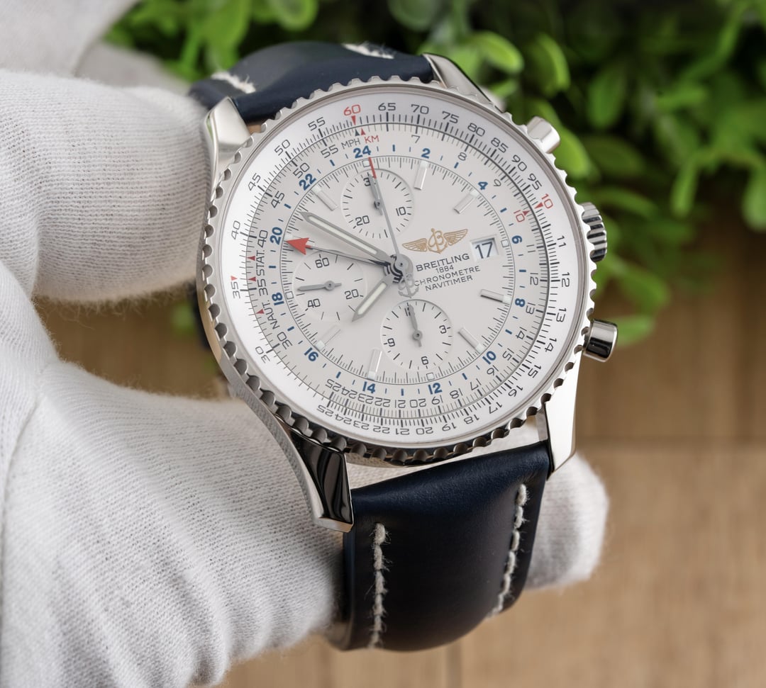 | Breitling Navitimer World GMT A24322 White Dial Looks Great Gorgeous Watch! dark_knight_2013 (3676) |