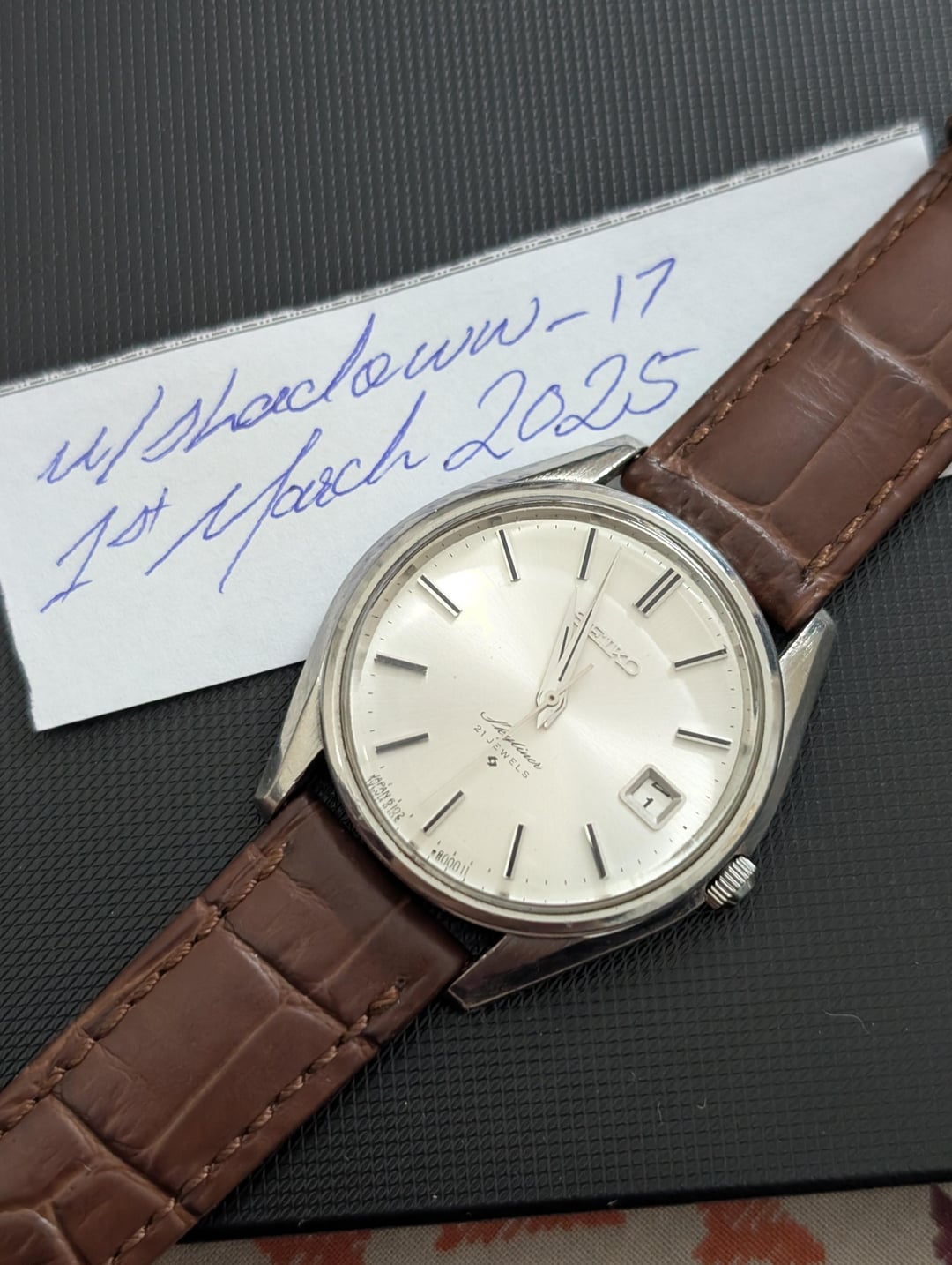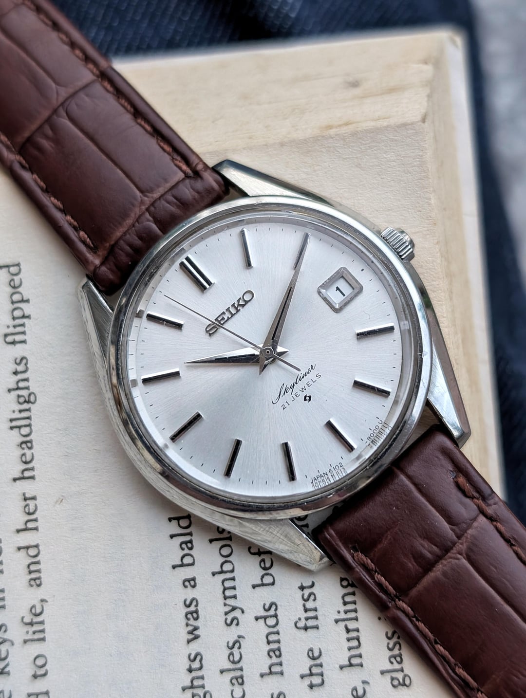 Greetings Watchexchange! Up for sale is a striking Seiko Skyliner 6102-8000 from June of 1972. The watch is a striking Seiko dress watch in fantastic condition for the age. The case is slightly polished and has a beautiful original acrylic crystal free of scratches. The watch comes on an aftermarket leather leather strap. The case measures 37mm and is pictured on a 6.5" wrist for size reference. The watch is serviced and runs incredibly well. [Service ](https://imgur.com/a/jyTJexH) [Timestamp ](https://imgur.com/a/43XBoF3) The watch is priced to sell at $225 paid via Zelle or Wise and shipped via UPS. Please allow 3 to 5 business days of your payment for the watch to be shipped out. Be sure to reach out to me if you have any questions or require additional photographs or information. I entertain requests for custom timestamps. Thanks for looking!