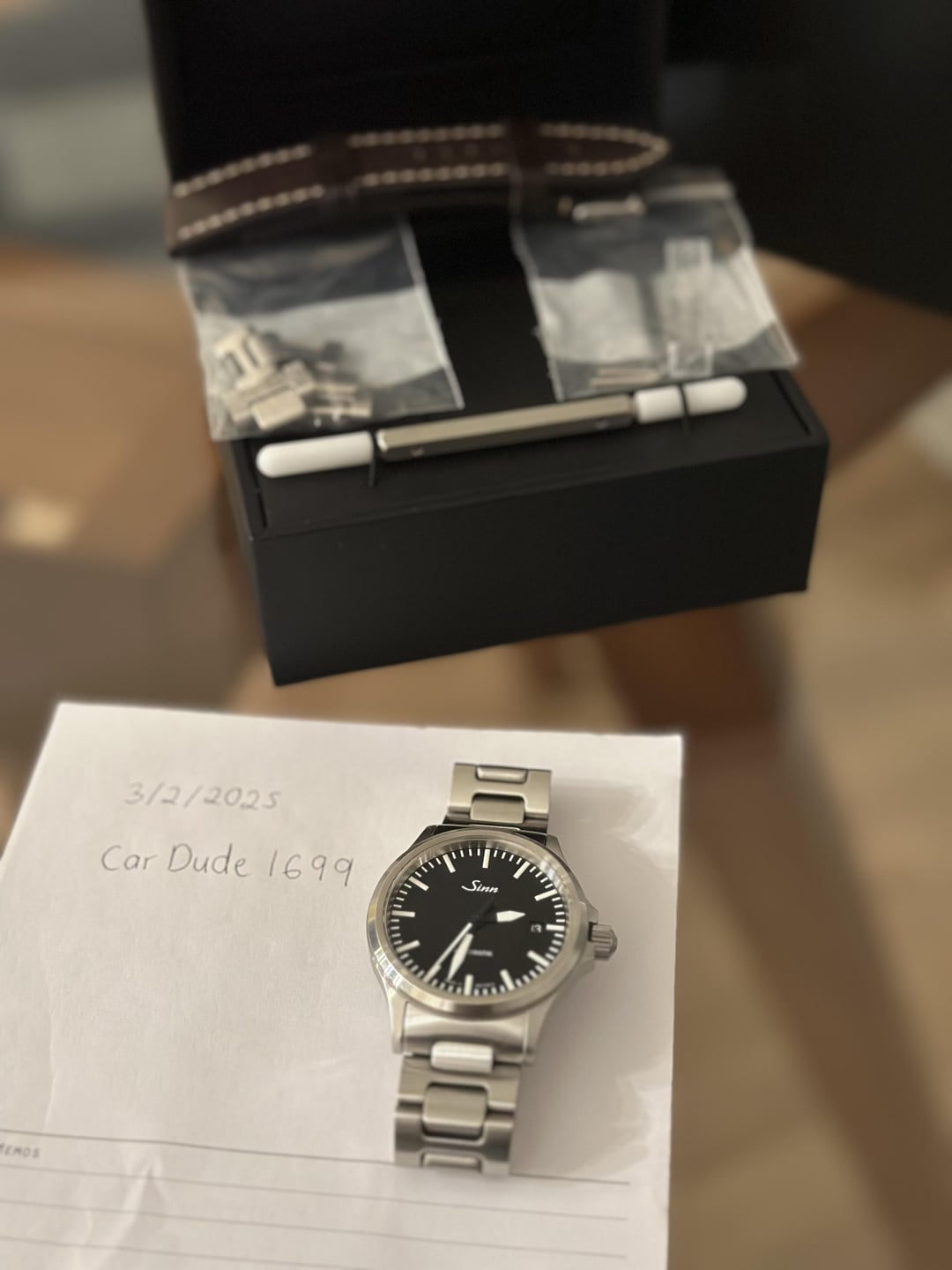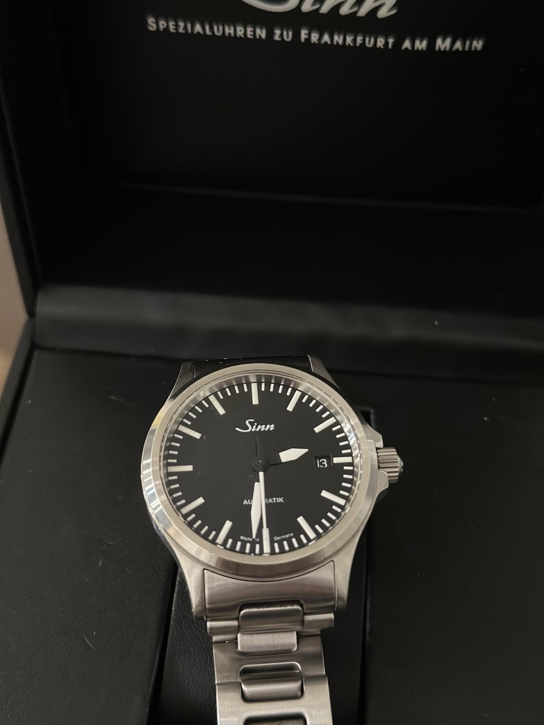 Hi, Watch Ex! Up for sale is my Sinn 556i, a sleek and reliable timepiece from the renowned German watchmaker. This beauty features a 38.5mm stainless steel case, a crisp black dial with luminous hands and markers, and a sapphire crystal for exceptional clarity and durability. Powered by a precise Swiss automatic movement, it’s perfect for daily wear or special occasions. The watch is in great condition, although slight wear is noticed on the bracelet resting points — it’s ready for its next owner to enjoy its understated elegance and robust craftsmanship. Serious inquiries only, please! Asking $1,050.00 via Zelle or Wire.