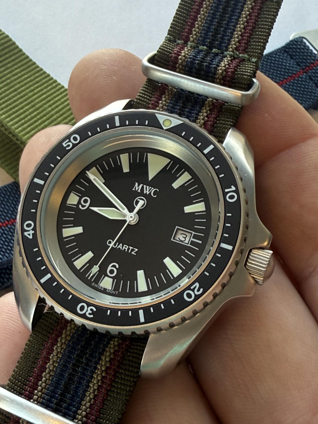 Up for sale is my very clean condition and new battery just installed with pressure test….. MWC Rn300 1999 dial variant in fully matte finish. Great little piece. Runs the Ronda Swiss quartz movement and everything works perfectly. Super good grab and go. 42mm case with 20mm lugs. Asking: $250 shipped Payment: Zelle / PPFF / Venmo Location: Nebraska Tagged pic: https://imgur.com/a/WB41Uvw