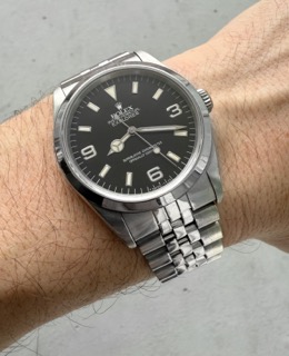 Bracelet/Strap: Original Rolex stainless steel jubilee bracelet which shows honest signs of previous wear. This 62510H jubilee band is an original Rolex band though it is not original to the watch as these explorers would be fitted with an oyster band original. That said, it is a perfect fit and looks incredible on the wrist! The bracelet has only light stretch, with lots of life left for wear. The watch will fit a 7.5 inch wrist.
