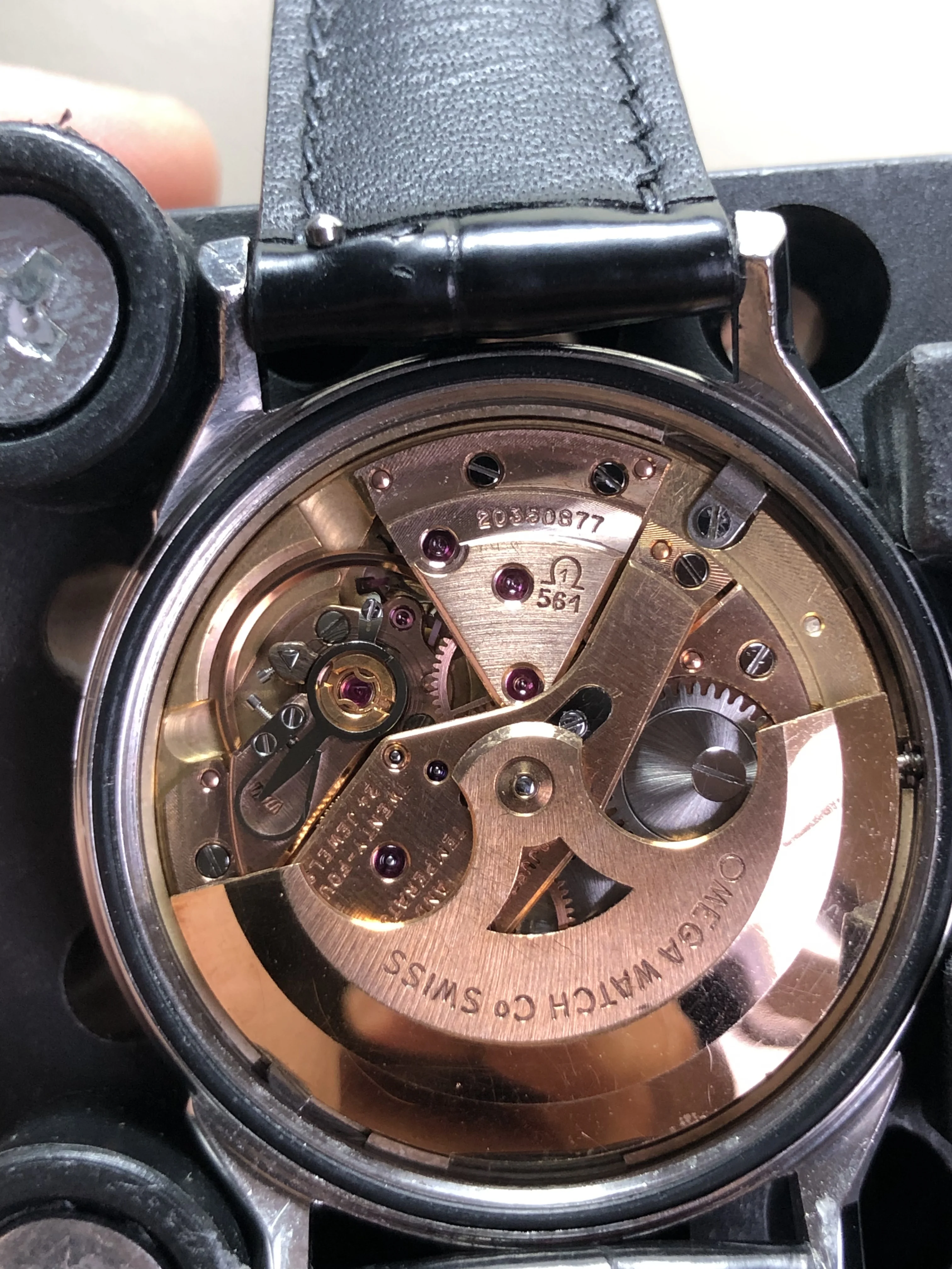 • Strap: Brand new handmade crocodile leather strap with smart pin. Aftermarket Omega buckle.