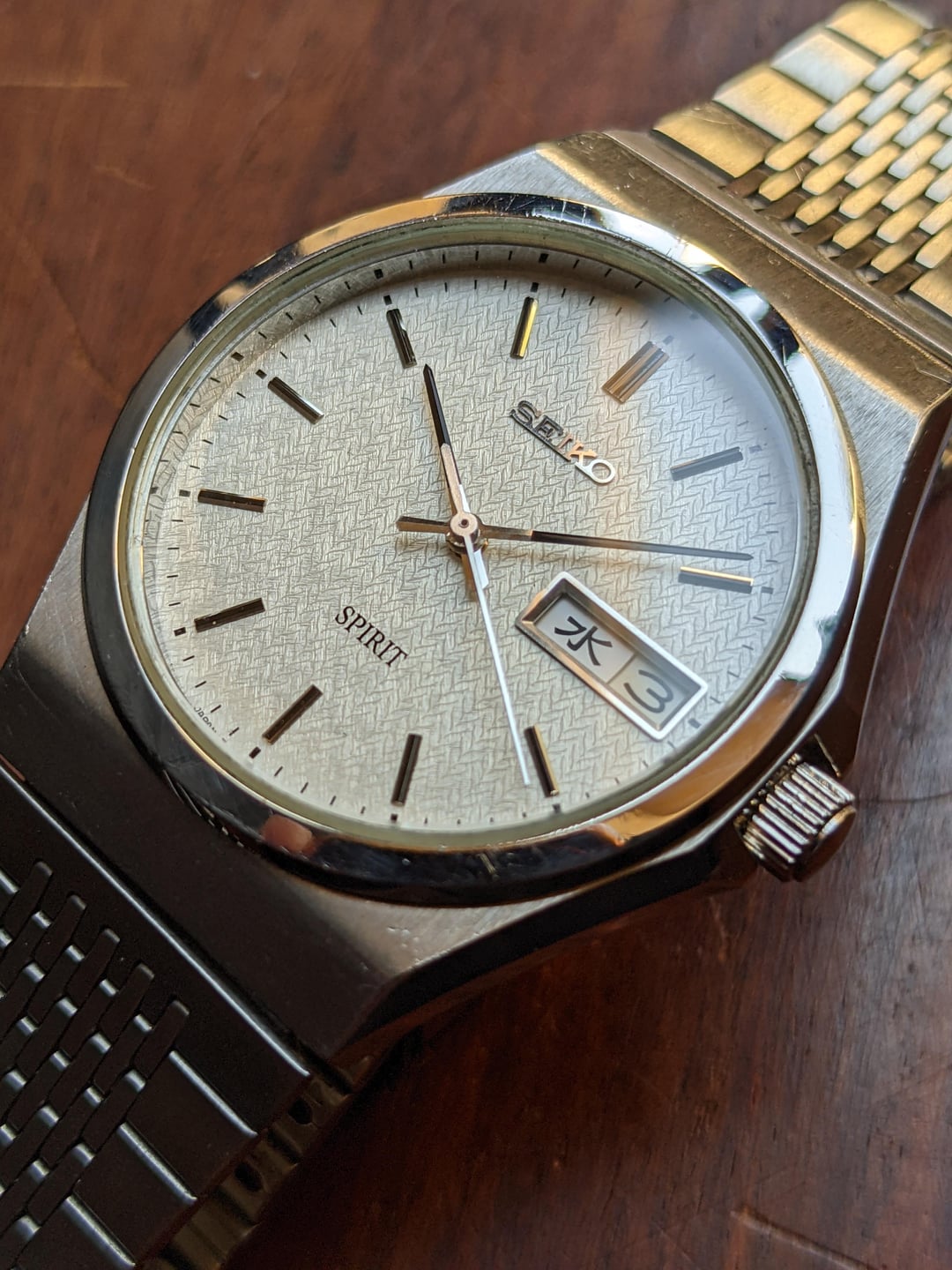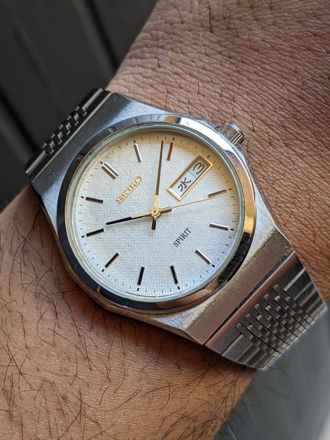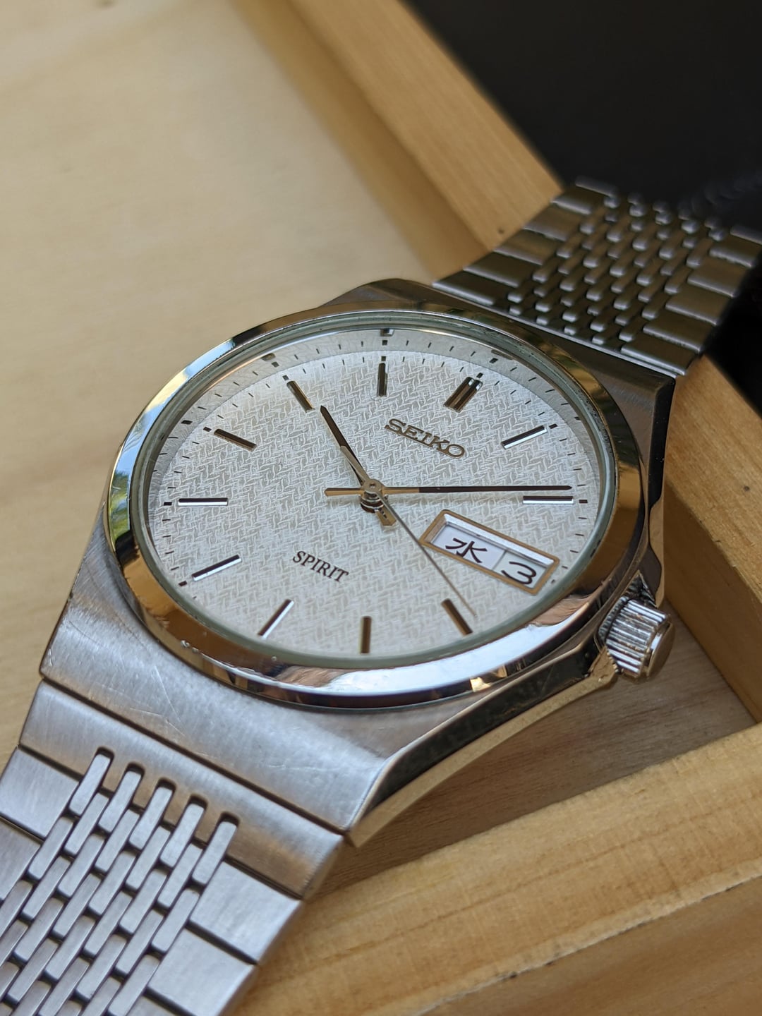 ![Thumbnail [WTS] Seiko Spirit in Corn Field Textured Dial ๐พ with English & Kanji DayWheel from October 1996 ๐๏ธ for sale ๐ต $165 (Shipped) ๐ข Video Attached ๐ฝ๏ธ 1](https://cdn-cf.watchpatrol.net/120x120/img/full/21a70b0c4dc552c97e4753b6407397c17a845c12.jpg)