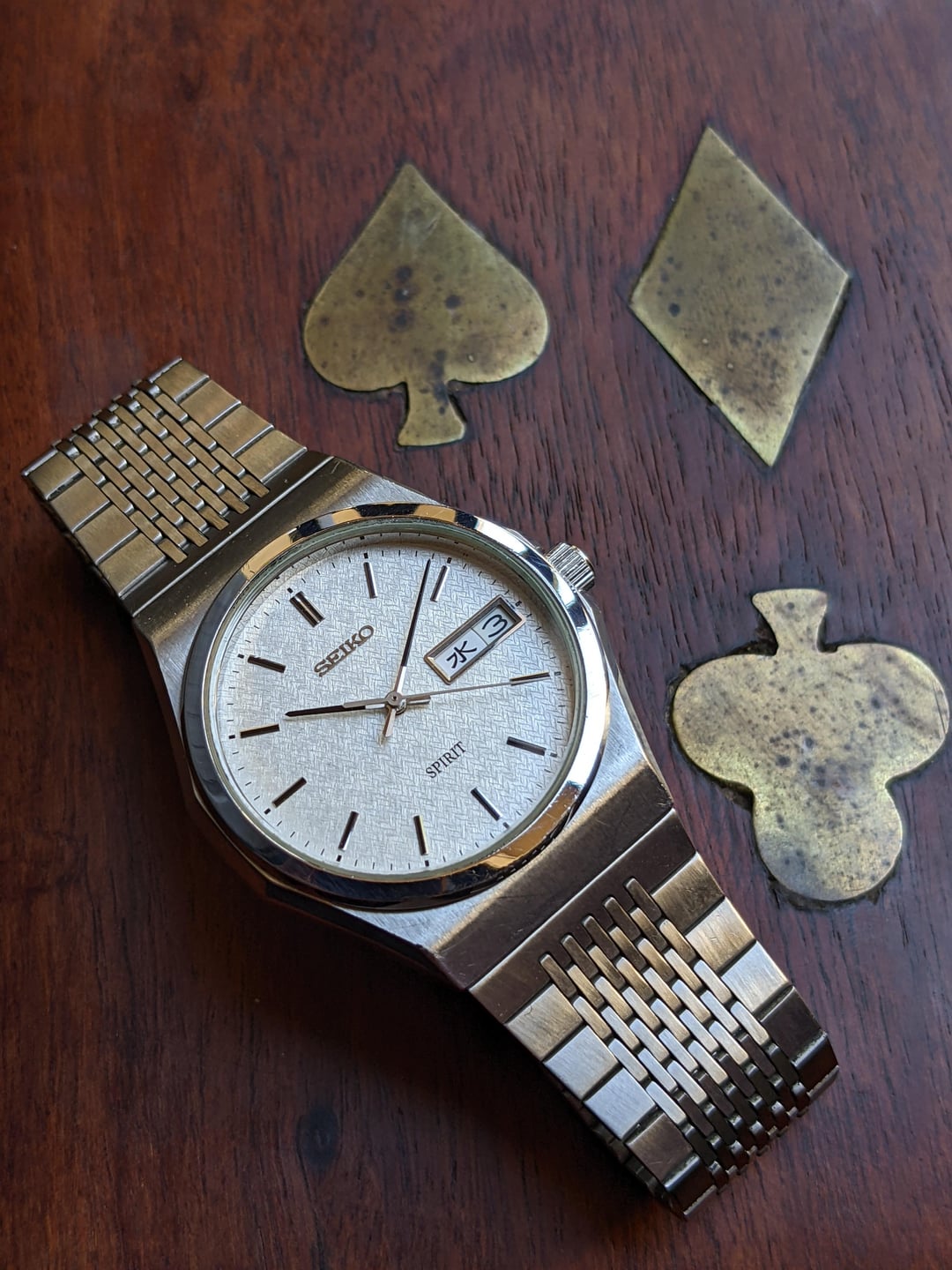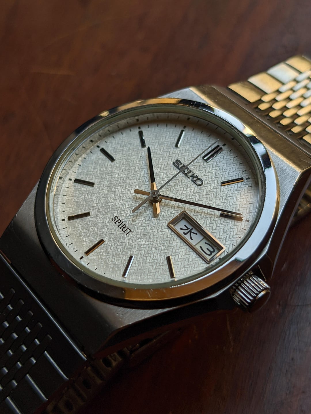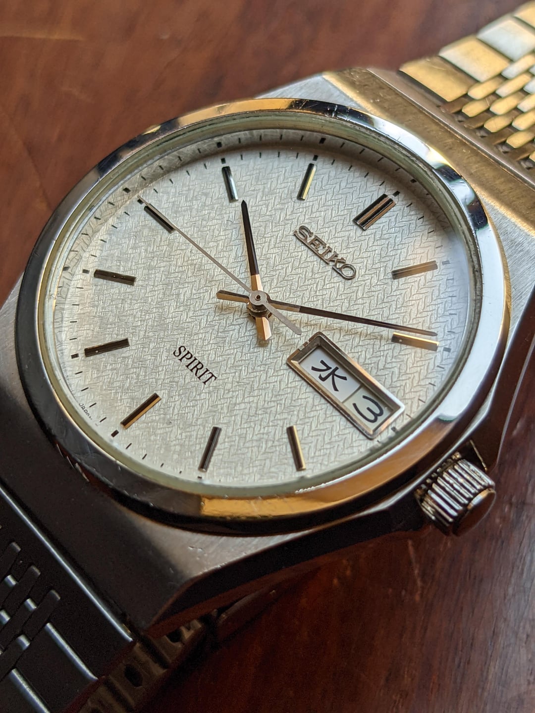 ![Thumbnail [WTS] Seiko Spirit in Corn Field Textured Dial ๐พ with English & Kanji DayWheel from October 1996 ๐๏ธ for sale ๐ต $165 (Shipped) ๐ข Video Attached ๐ฝ๏ธ 1](https://cdn-cf.watchpatrol.net/120x120/img/full/21a70b0c4dc552c97e4753b6407397c17a845c12.jpg)
