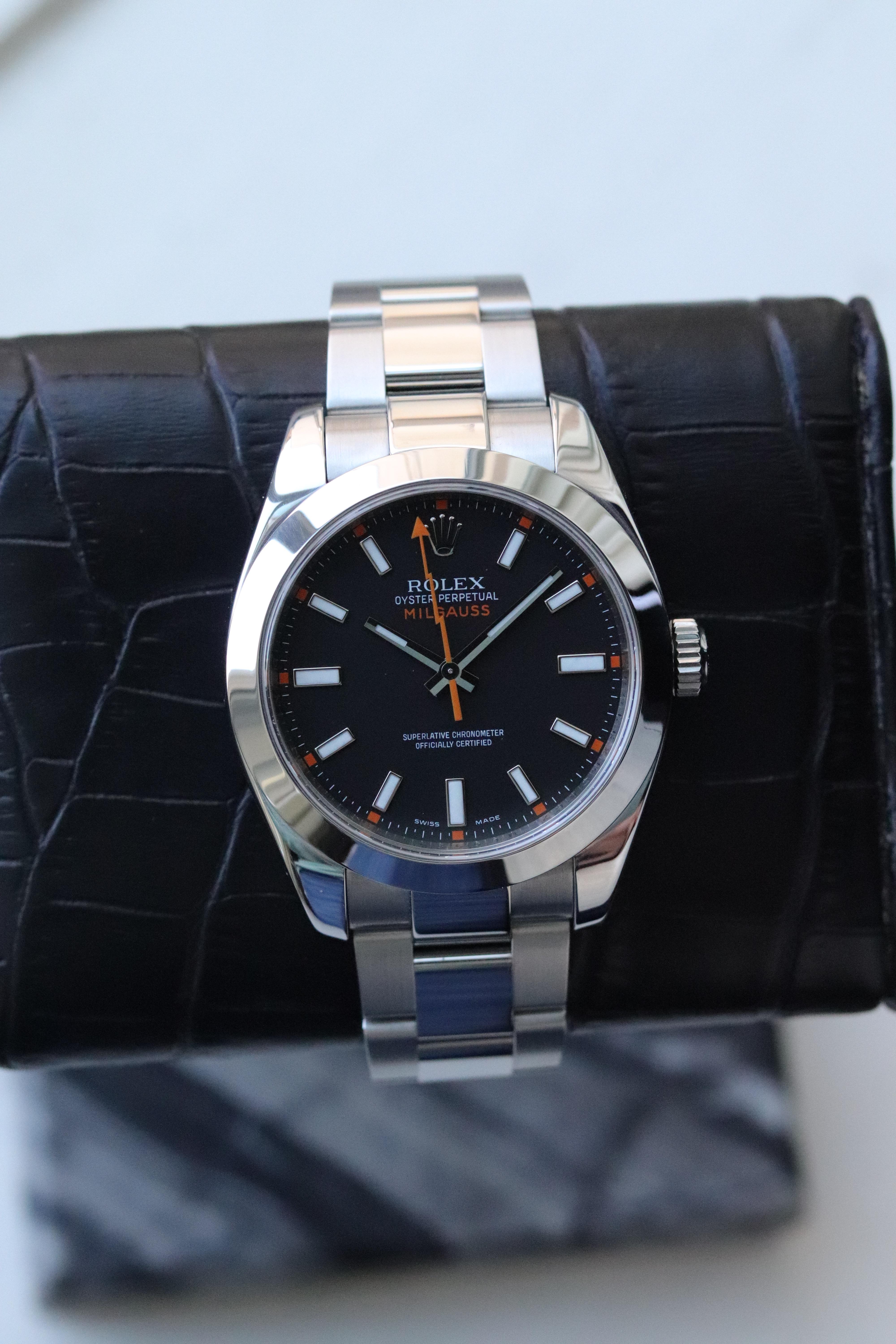 Rolex Milgauss 116400 w/ Lighting Orange Seconds Hand PRICE: $6,950 https://imgur.com/a/5Vqiiqd Condition: Clean Preowned - The finish throughout the watch is excellent showing very minor wear. The watch runs and functions as it should. See photos for best representation of condition! Scope of Delivery: Watch Only Trades are welcomed if $1500+. Please send pics and price of trade offers. Free FedEx Delivery *** Cleared Wire/Zelle BEFORE Shipping*** + Tax if you are a GA Resident **We are a brick and mortar store in Carrollton, GA. We have many references available within the watch community! *IG: _horology101_