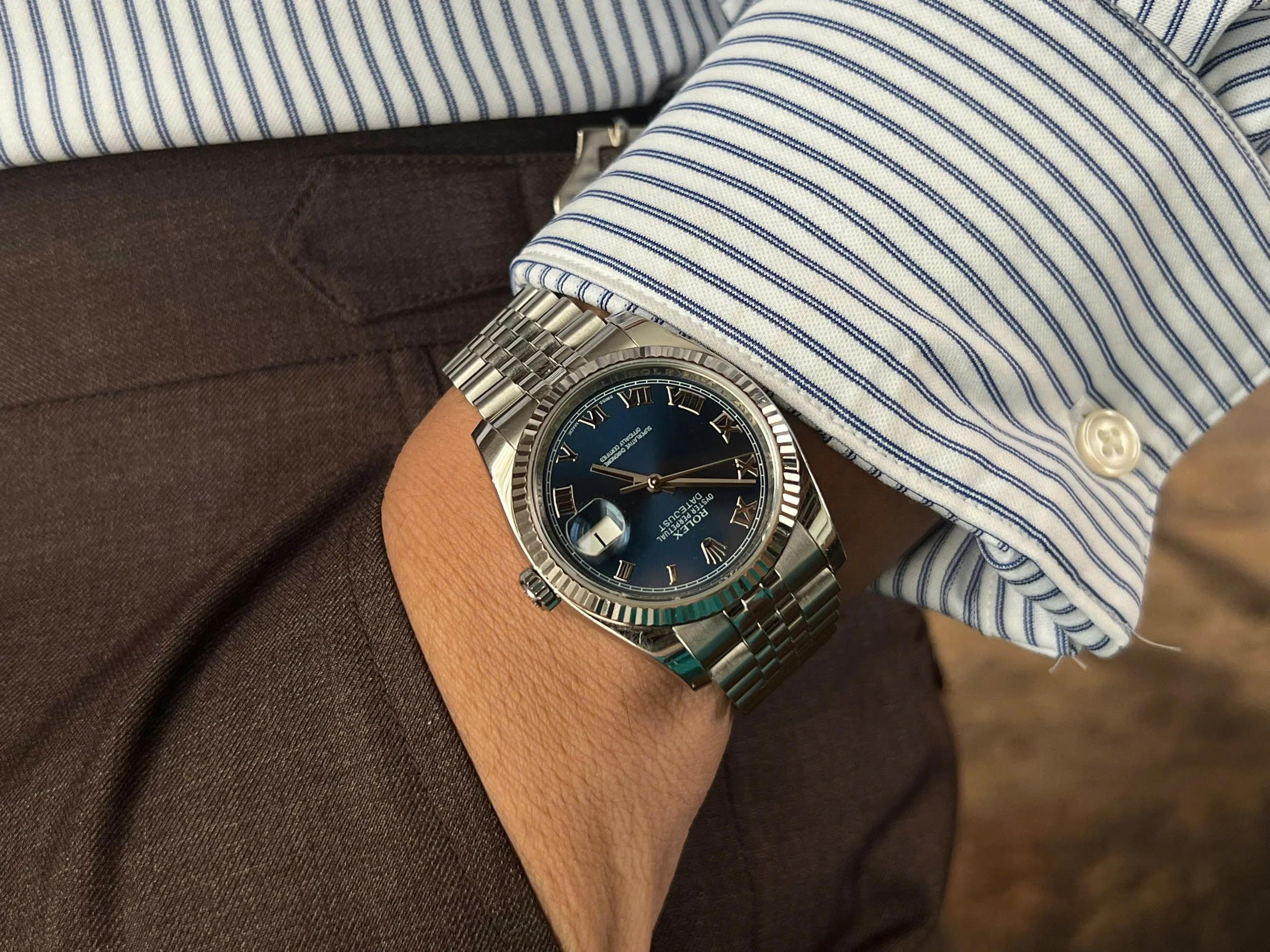 The dial is in flawless condition. A blue dial with Roman numerals is exactly the combination I wanted when I was looking for a Datejust.