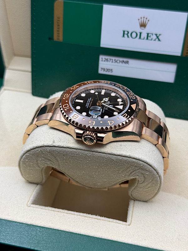 | Rolex GMT-Master II 126715CHNR Rose Gold Root Beer Automatic Watch B&P 2024 timeluxury (387) |