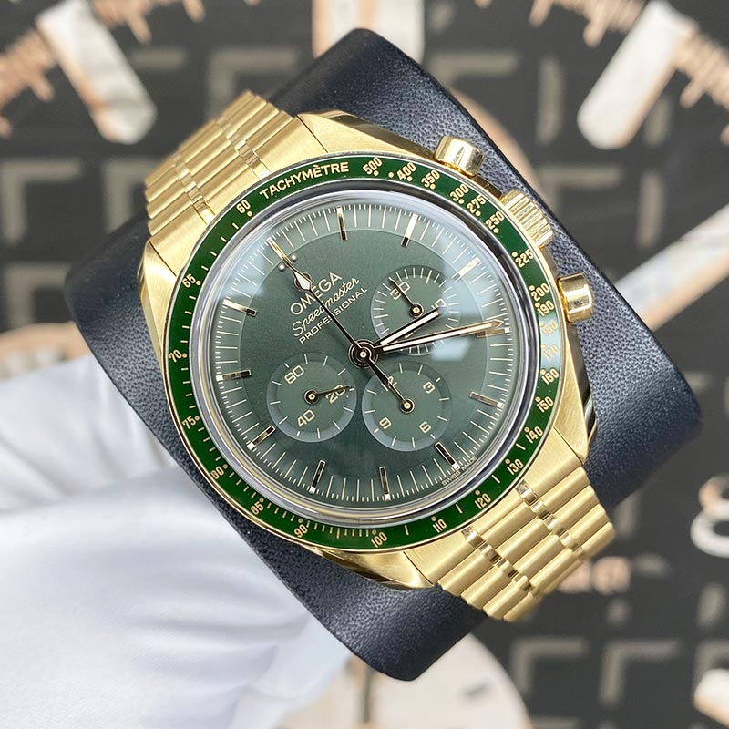 FSOT: Omega Speedmaster Moonwatch Professional 310.60.42.50.10 Yellow Gold Green Dial