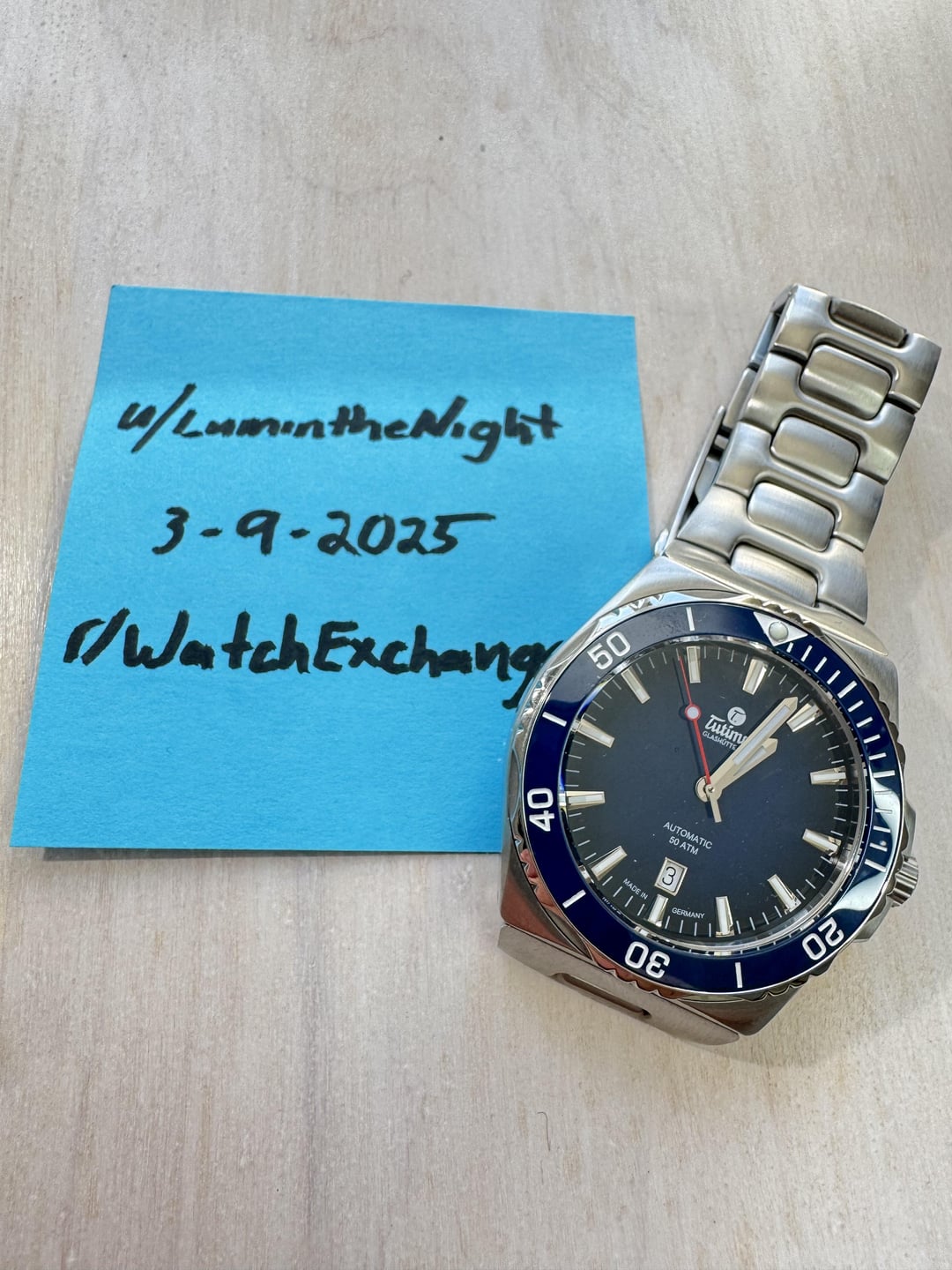 Hello WatchExchange and watch fam! I am going to be selling off a fair number of my watches in the next couple months. I have had some unexpected expenses, and am needing to pay down some bills. Sad to see them go. I keep my sub updated with the watches that I am currently selling and are available. r/LumintheNight Selling my Tutima Seven Seas S, the steel version. Blue degrade dial is stunning. 44mm case. Watch is in excellent condition. I can only find a couple marks on the bracelet that show some wear. Otherwise the watch is minty!! Full set, including all boxes and papers. Runs good. Smooth date and time setting. Please look over the photos. Including photos of it running in 5 positions on the timegrapher. Asking $1250 OBRO Shipping in the states included, I try to ship UPS 3 Day. International shipping possible, let’s chat details. Please drop a comment here before sending me a message. (That way I can easier see your transaction history) I am not a business, I am just a guy who has bought way too many watches the last couple years. No trades at this time, as I am in need of cash to pay some bills. I have 185+ confirmed transactions here on WatchExchange. I have over 15 years and over 1,250 100% positive feedbacks on eBay. If a purchase doesn’t meet your expectations, let’s talk it over. But I won’t accept a return if you change your mind on the watch. Payment by Zelle, Wise or Venmo GS is prioritized. GS +3% (price is net amount to me) If you are a well established member of Watch Exchange, we can do PayPal or Venmo F&F. Feel free to ask me any questions. I am happy to chat watches.