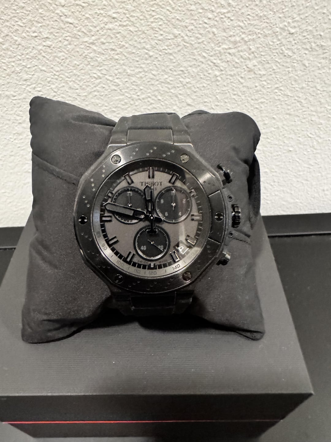 Selling my Tissot T-Race Quartz Chronograph (Ref. T141.417.37.061.00) – a bold, sporty timepiece inspired by motorcycle racing. Worn only once, it’s in perfect condition with no scratches or signs of wear. Details: Reference: T141.417.37.061.00 Movement: Quartz chronograph Case Size: 45mm Dial: Black with chronograph sub-dials Crystal: Scratch-resistant sapphire Water Resistance: 100m (10 ATM) Strap: Original black rubber strap with deployment clasp Condition: Like new, worn once Includes: Full box, papers, and all original packaging Price: $425 (OBO). Willing to ship within the U.S. at buyer’s expense. Payment accepted via PayPal, Venmo, or Comment or PM if interested!