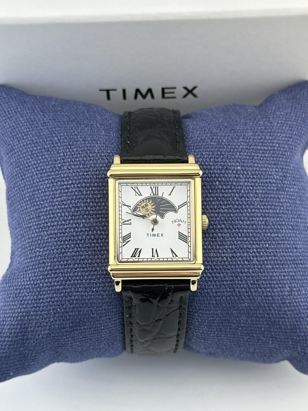 SOLD — Hi WatchEx, I’m selling my Noah x Timex Sun and Moon Watch. This watch was a limited run that I preordered last year and just received a little over a month ago. It’s a little bit small for my taste so I’m selling it. Watch is in like-new condition and includes full original set. Asking price of $200 via Paypal including shipping to CONUS only. No trade offers. Watch specs: Made exclusively for Noah by Timex. Quartz movement with mineral glass crystal. 50m water resistance. Case Size: 37mm x 25mm. Lug width: 18mm. Sun/Moon feature dial feature as AM/PM indicator. Gold-plated stainless steel case. Genuine leather strap with crocodile pattern. Album: [https://imgur.com/a/noah-timex-sun-moon-CxDqv9s](https://imgur.com/a/noah-timex-sun-moon-CxDqv9s) Timestamp: [https://i.imgur.com/w5tCCo8.jpeg](https://i.imgur.com/w5tCCo8.jpeg) Product page: [https://noahny.com/products/noah-x-timex-sun-and-moon-watch](https://noahny.com/products/noah-x-timex-sun-and-moon-watch)