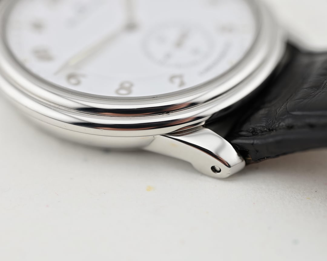 Easily the leading candidate for watches that “feel” like a a lot more than the price would suggest, in my very humble opinion, and the subject of numerous wonderful articles and reviews of yesteryear. Dial: The flawless matte-eggshell white dial with mirror polished applied Breguet numerals set neatly in a slightly sunken hour track providing a great deal of depth and dimension to the dial. The no-date with sub seconds and modest and warm lume manages to be modern, timeless, dressy, and sporty. Case: The 36mm stainless steel case is just 6.8mm thin with its thin signature double shoulder bezel and nicely sized signed crown. The 7002 was the brand’s first (and only at the time) stainless steel case to feature a sapphire caseback displaying the beautifully finished movement. The case is in very good condition with sharp defined lugs, and only very minor surface swirls present, as photographed. Movement: the manually wound Blancpain caliber 64-1 is a heavily modified and finished Pseaux 7001 that was Blancpain’s only certified chronometer at time of launch. The is winding, setting, and running well, averaging approximately -5 s/d across 6 positions, service history is unknown. Includes: Presented on a it’s original, signed black leather and croc leather strap with its original stainless steel pin buckle. Price: $6800 including insured FedEx shipping from Phoenix, AZ to a FedEx office location or commercial address. International shipping available at cost. Payment by ACH or wire, no trades please. I have all positive references here, forums, eBay, and instagram (@)meticulist Thanks mods for the space.