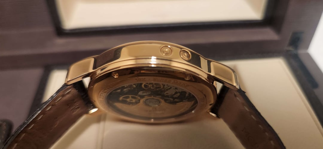 timestamp: [here ](https://imgur.com/a/4X0ywnM)and 2nd photo Hi, it's my first time trying to sell on r/Watchexchange. I'm selling my Zenith El Primero Chronomaster Ref. 17.0240.410. As per the title, it has an 18K rose gold case and the chronograph, triple calendar, and moonphase functions. I bought it 2 years ago in Tokyo since I was looking for some kind of chronograph watch to add to my collection, and this one in particular was absolutely beautiful. However, recently the watch has just been sitting in my box not getting any wrist time. I'm hoping a new owner can give it the love it deserves! The warranty card is dated November 2004, and the previous documented service record was in 2013. All functions work perfectly. **Price:** $8400 OBO Shipped within CONUS $7800 OBO if you're willing to meet in person near Madison, WI area. **Payment:** Paypal (F&F, or G&S with 3.5% fees paid by buyer), Zelle, Bank Wire **Includes** Watch, Original Box/Papers/Manual, (aftermarket) Leather Strap, pin for pushing moonphase/weekday buttons **Condition** Excellent, some signs of wear, mainly on the clasp but nothing significant that I can see. Previous owner may have had it polished during the 2013 service. **Detailed Specs** \- Reference: 17.0240.410 \- Case Diameter: 40mm \- Lug to lug: 46.5 mm \- Case Material: Rose Gold \- Water Resistance: 30m \- Movement: Automatic \- Power Reserve: \~48 hours